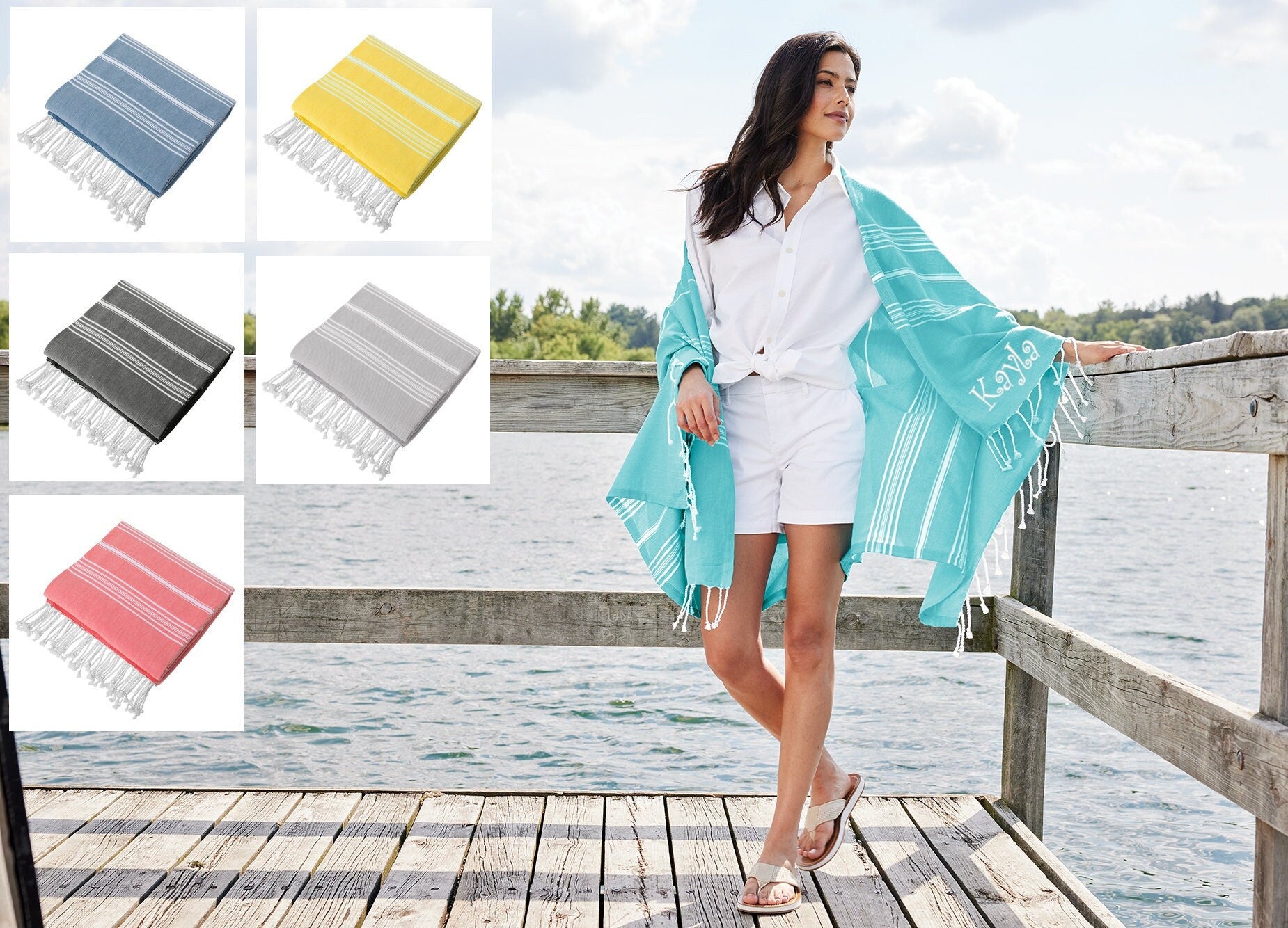 Personalized Blanket Throw with Stripes and Tassels, Monogrammed Cali Throw, Embroidered Name, Personalized Mom Bridesmaid Gift, Cotton