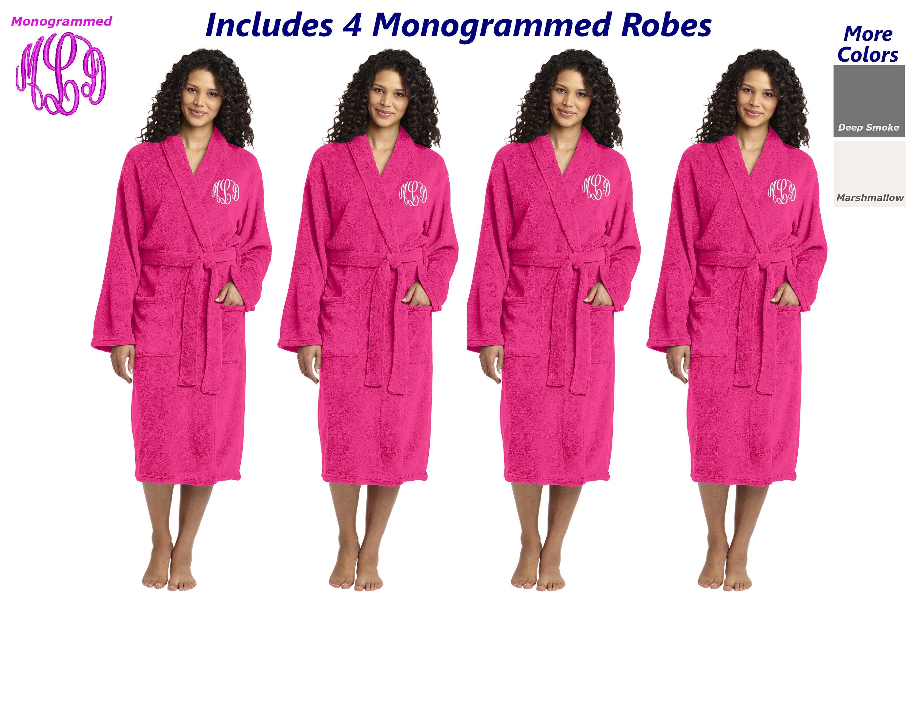 Four Monogrammed Robes Plush Microfleece Embroidered Bulk Order with Your Initials, Bridesmaid Robe Gift