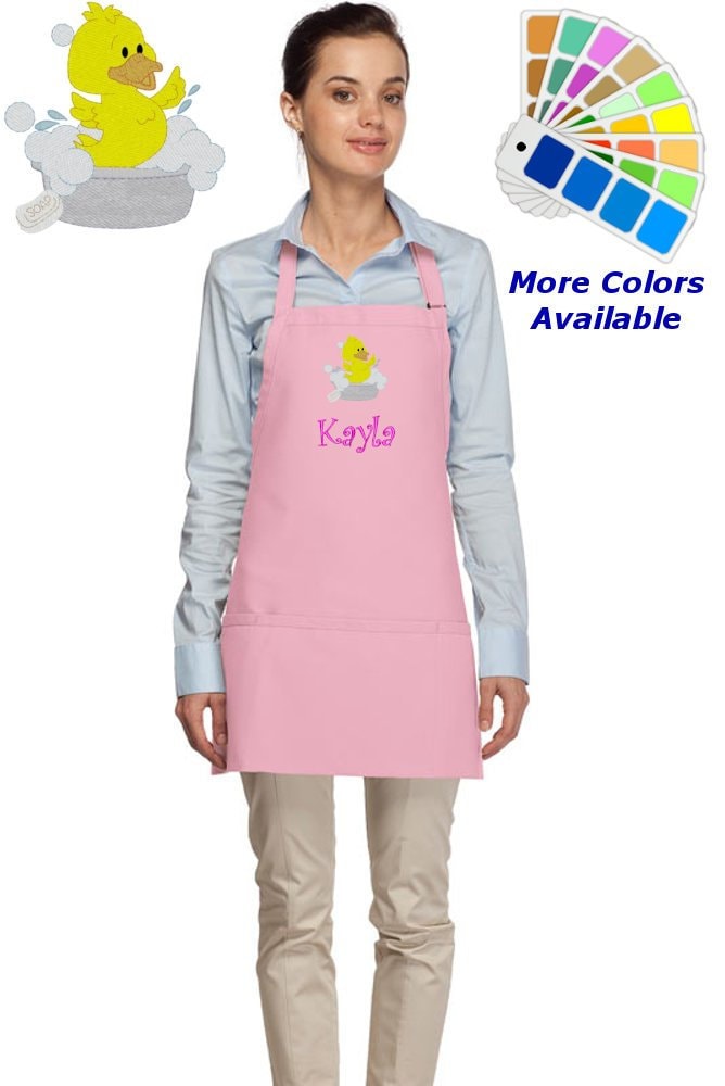 Personalized Apron Embroidered Duck Duckling Design, Custom Apron, Monogrammed Apron Name, Dad Mom Teacher Kitchen Home House Gift