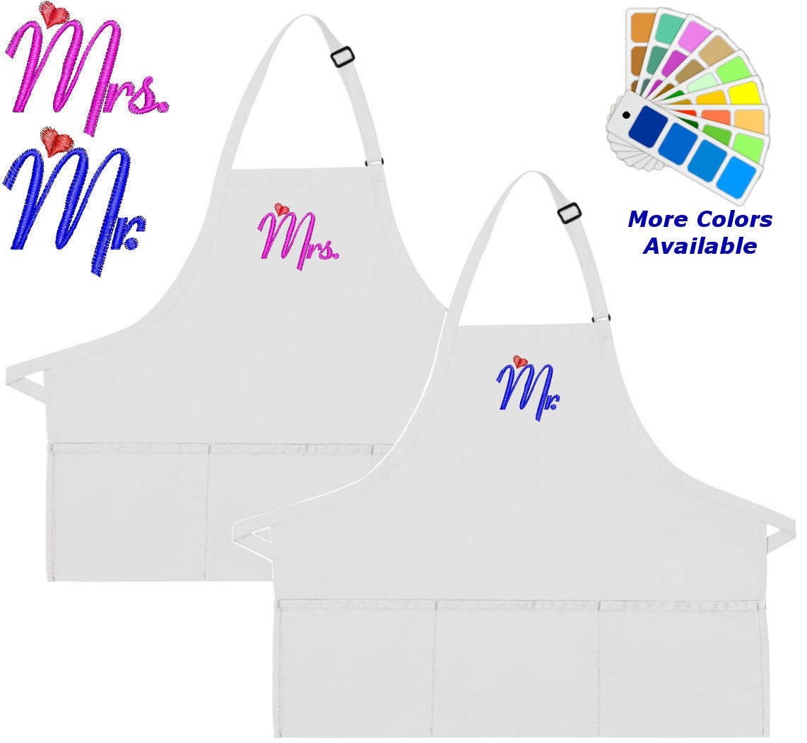 Regular price $29.99Sale price $29.99 Regular priceUnit price / perThis Item includes: ► 2 Adult Size Aprons ► Embroidered in the Color of Your Choice ► Mr. - Mrs. Embroidery Designs Available in Regular and...