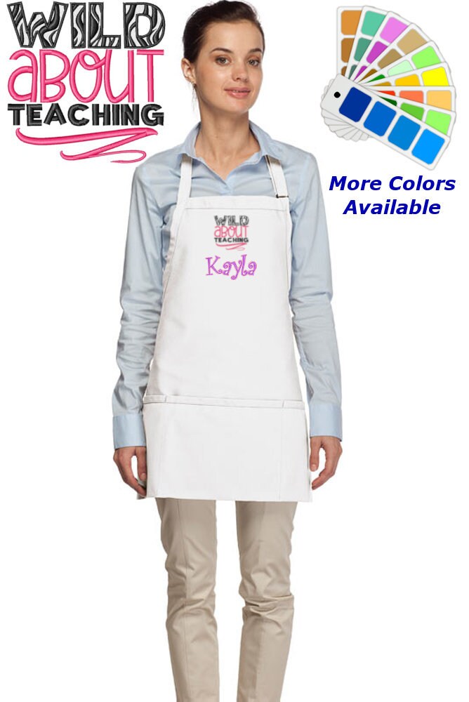 Personalized Apron Embroidered Wild About Teaching Design Teacher Gift