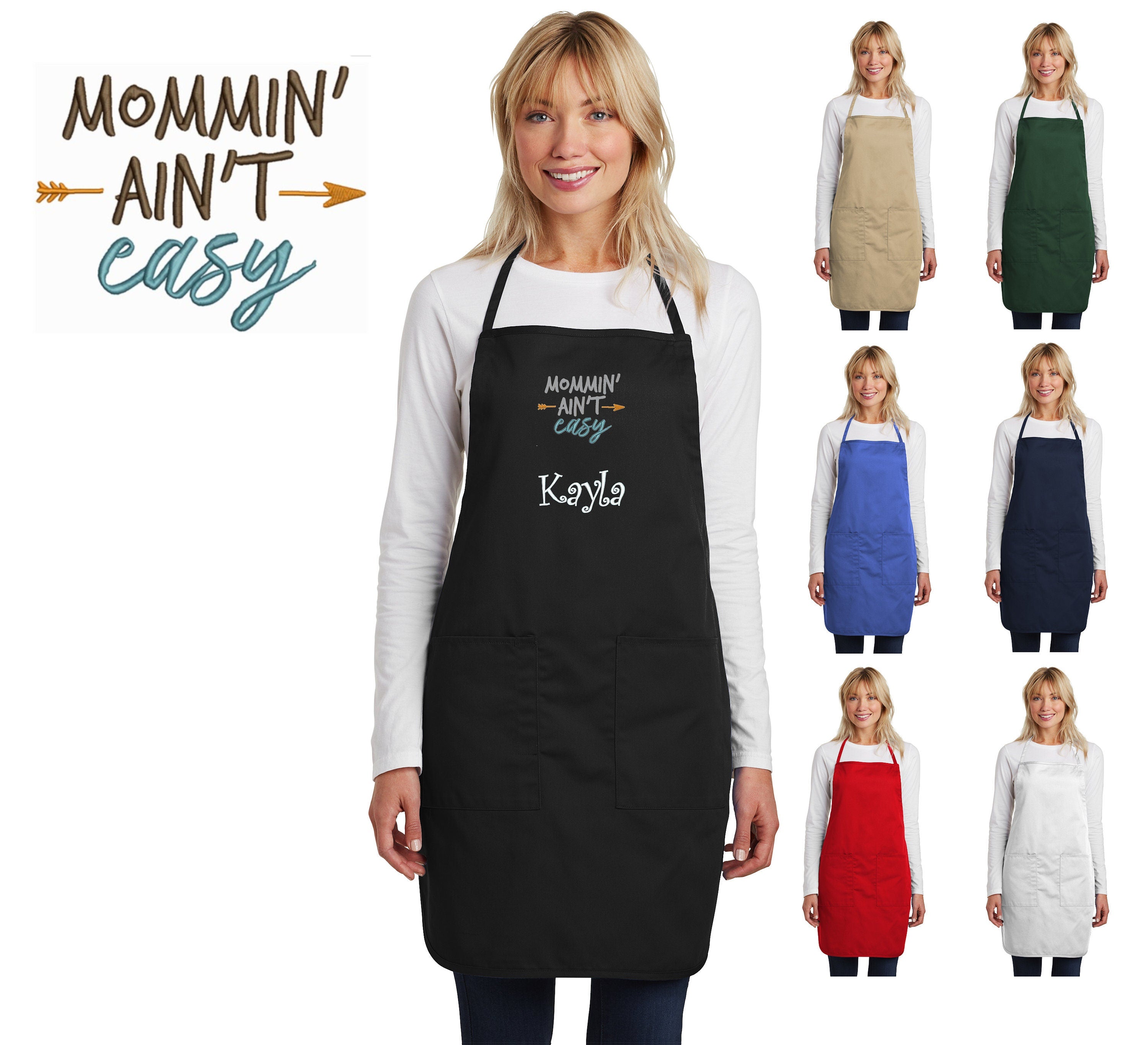 Personalized Mom Apron, Mommin aint easy, Embroidered Moms Name, Mothers Day Gift, Kitchen Gift, Monogrammed Mom Cooking Gift, Funny Apron