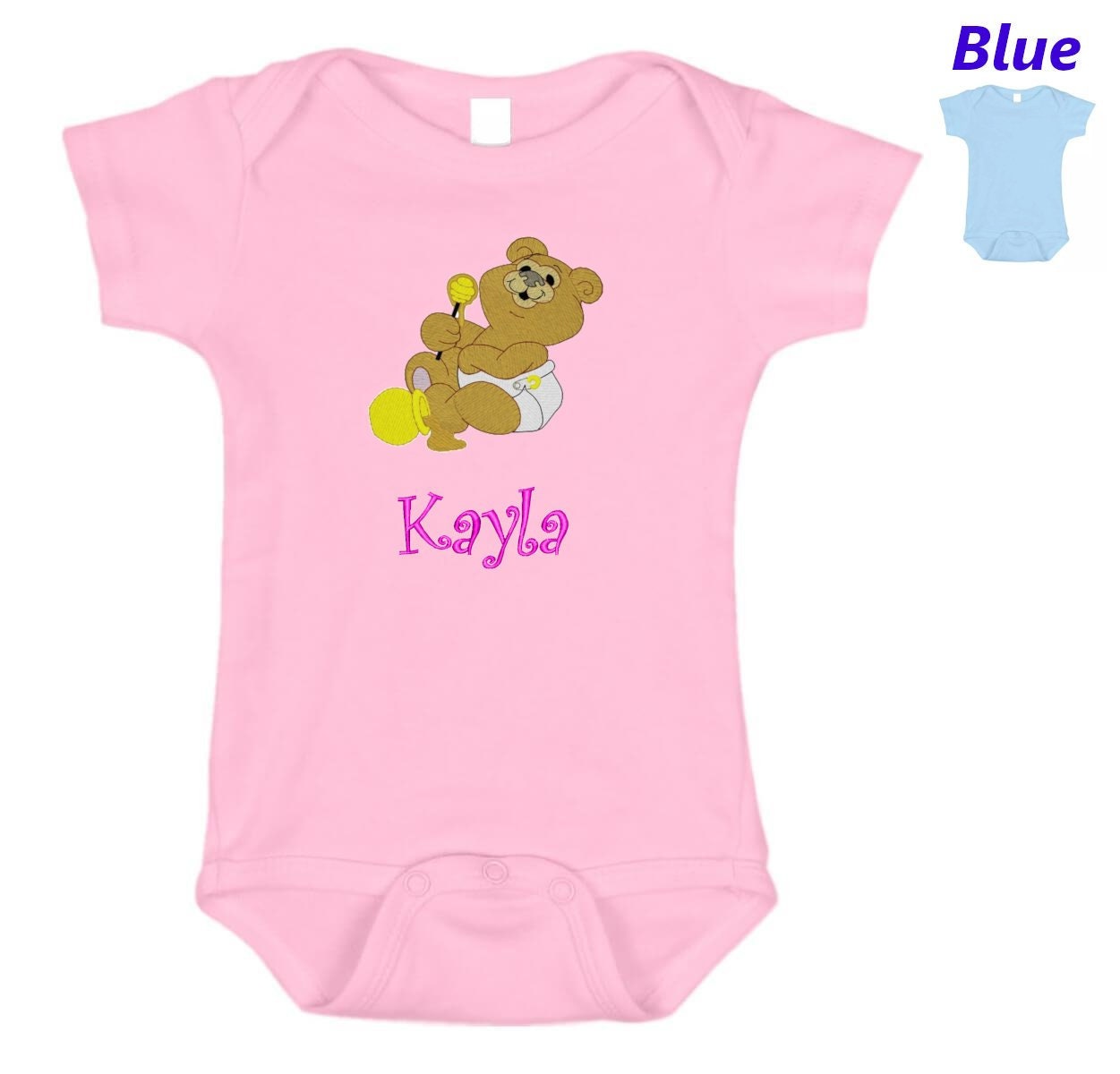 Personalized Baby Onesie Pink Blue Embroidered Baby Bear Newborn One Piece Body Suit Baby Shower Gift Monogrammed with Your Baby's Name
