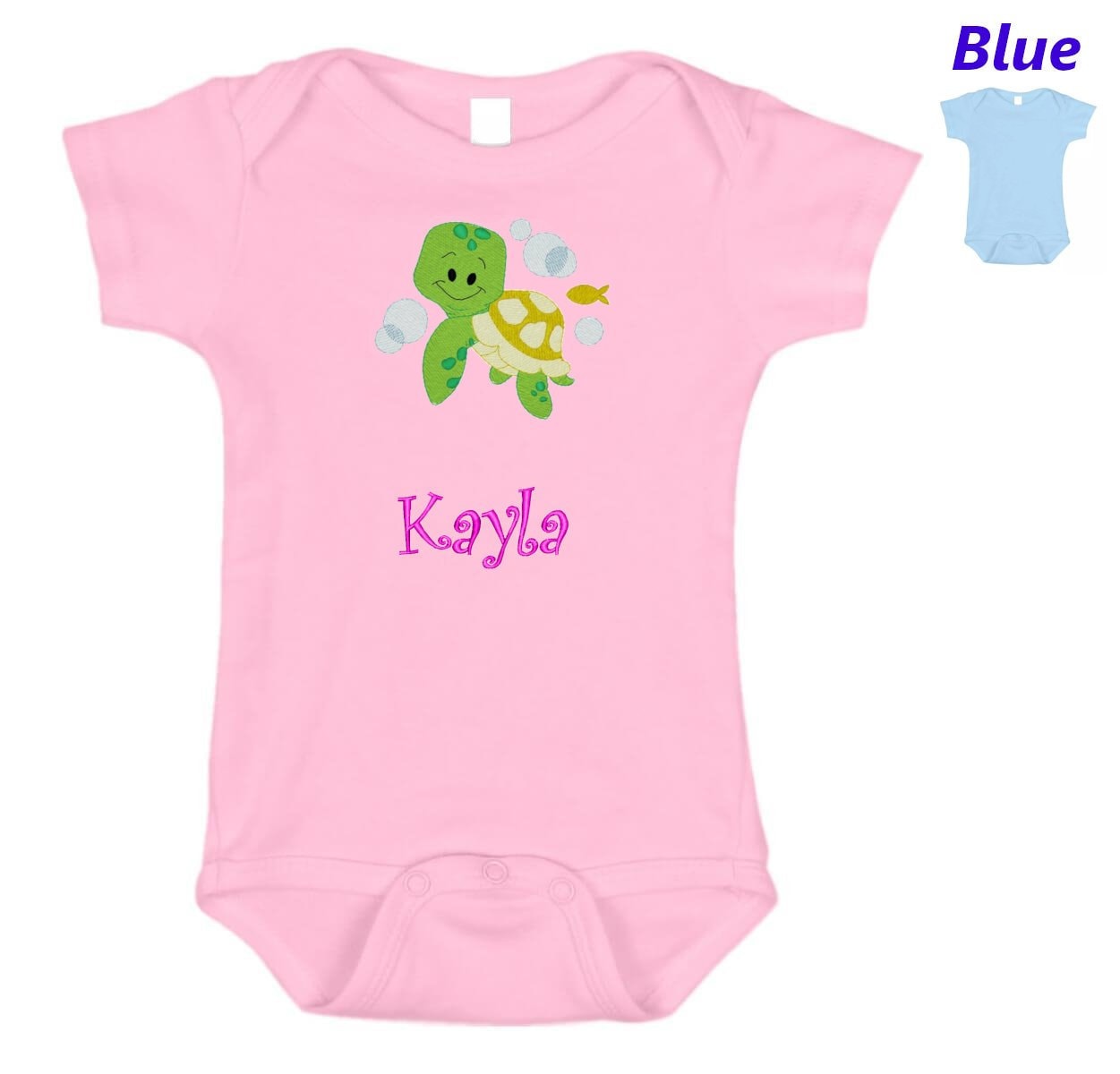 Personalized Baby Onesie Pink Blue Embroidered Baby Turtle Newborn One Piece Body Suit Baby Shower Gift Monogrammed with Your Baby's Name