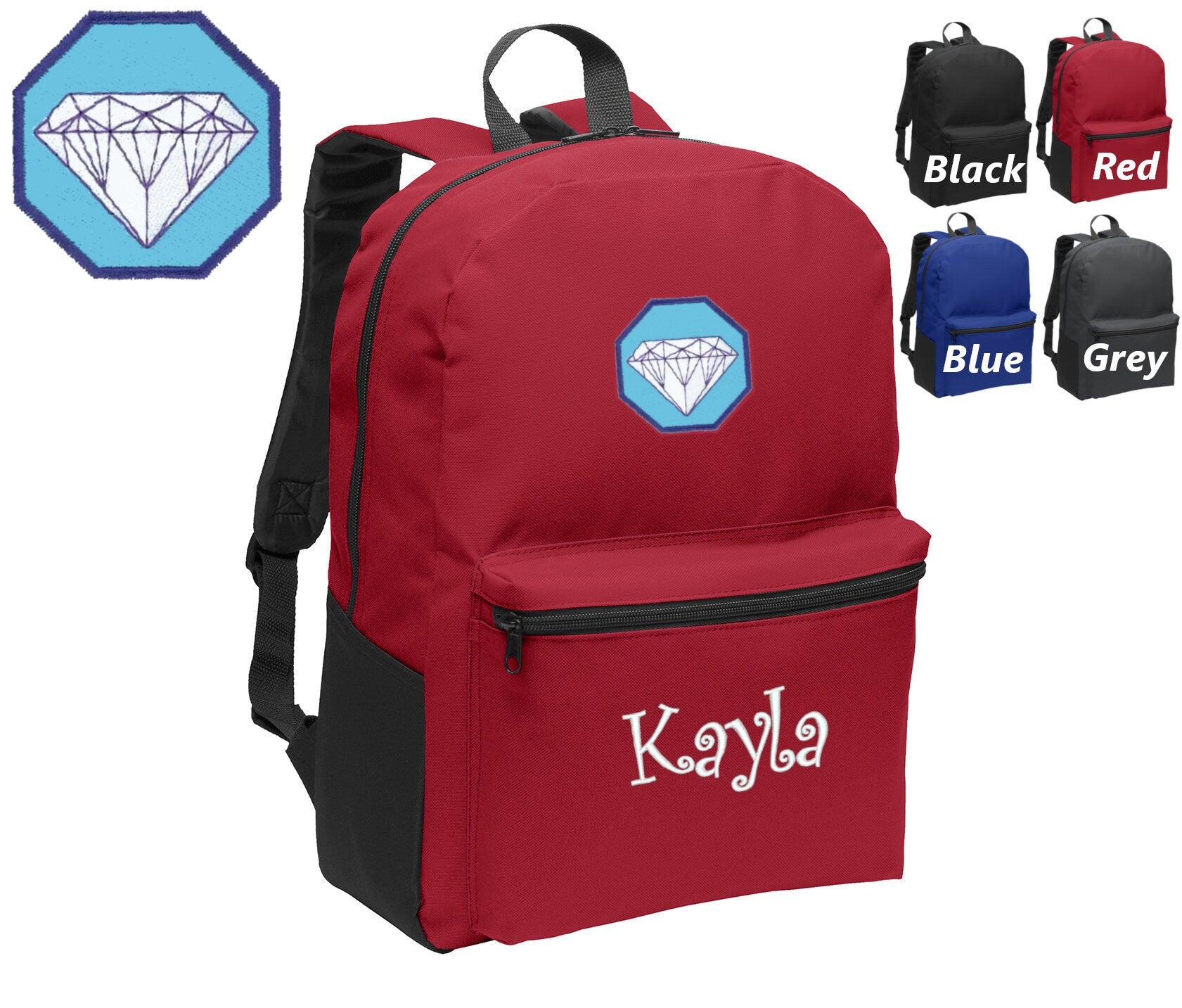 Personalized Kids Backpack Embroidered Jeweler Logo Diamond Monogrammed with Name of Your Choice Perfect Kids School Gift