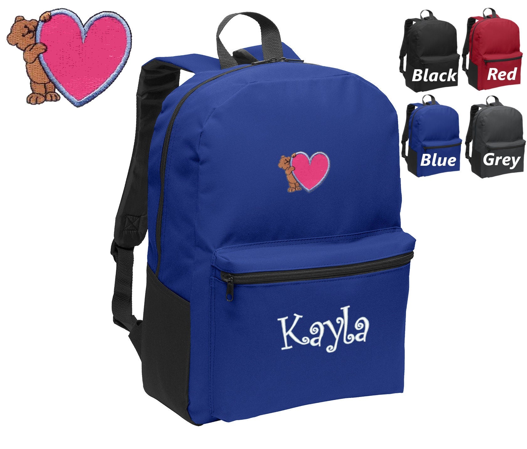 Personalized Kids Backpack Embroidered Bear with Heart Monogrammed with Name of Your Choice Perfect Kids School Gift