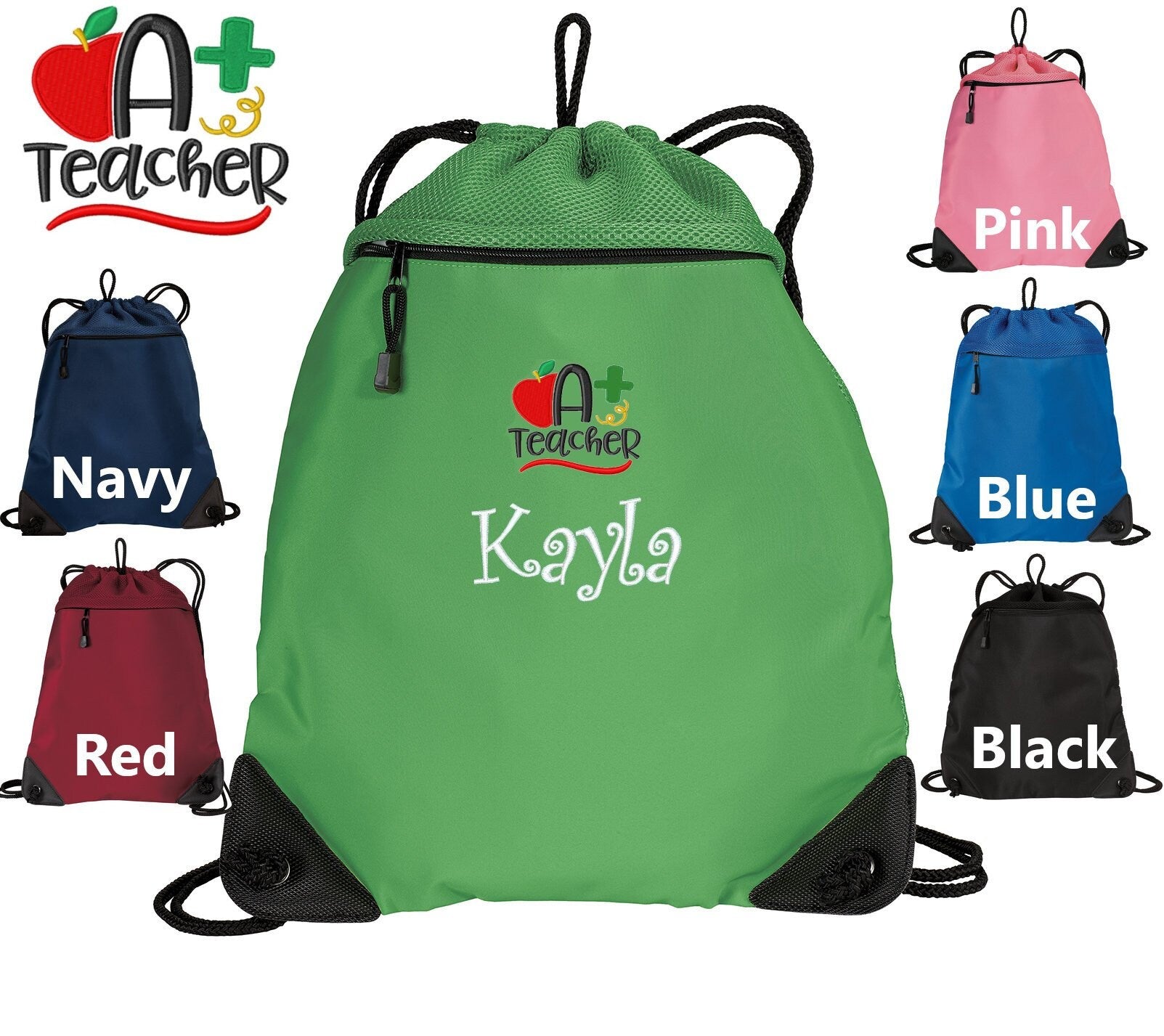 Personalized Teacher Cinch Pack, Drawstring Gym School PE Pool Backpack, Embroidered A Plus Teacher, Monogrammed Custom Name, Teacher Gift
