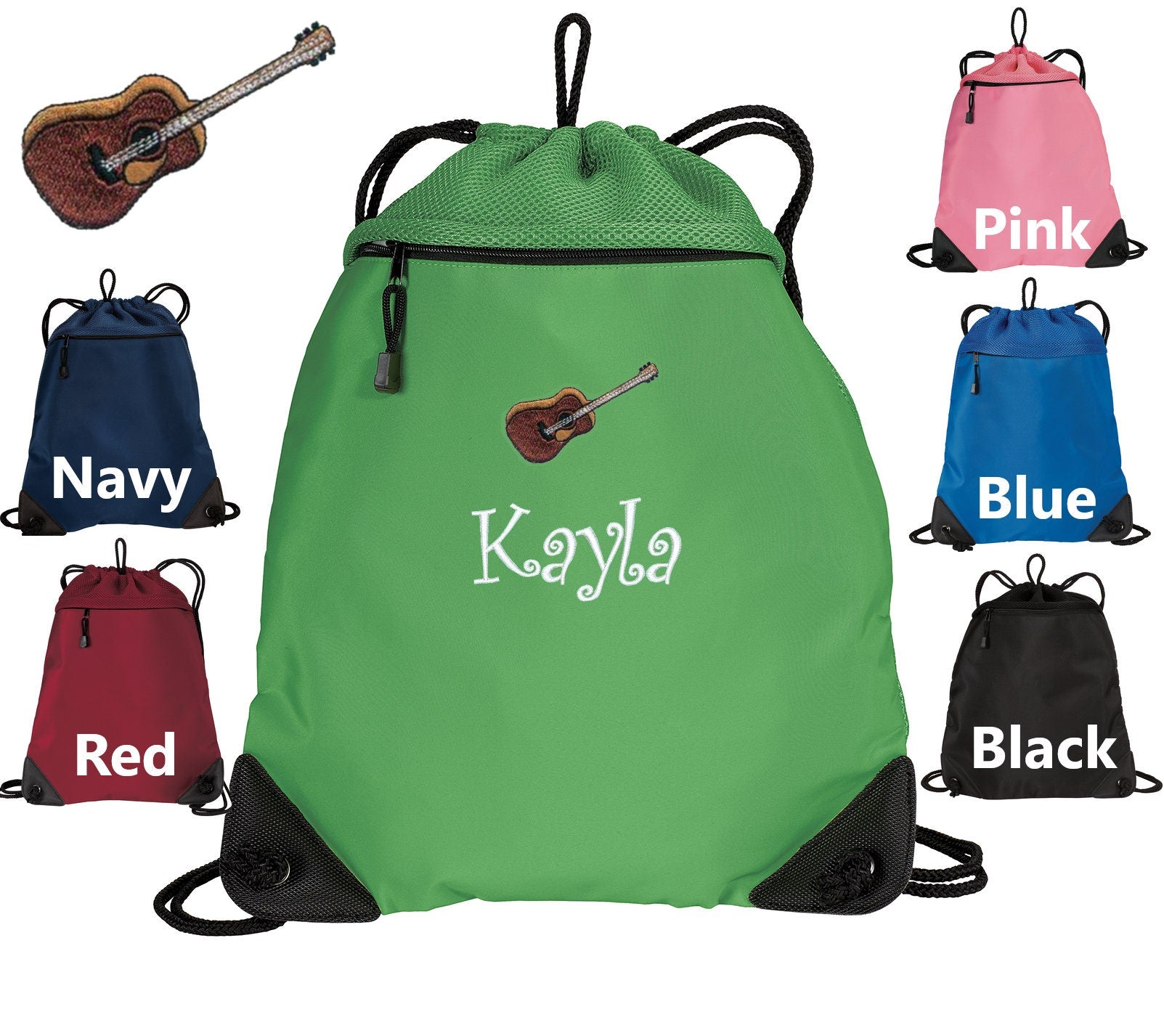 Personalized Kids Cinch Pack Guitar Design, Music Gift, Gym School PE, Pool Backpack, Monogrammed Custom Name, Perfect Kids Band Gift