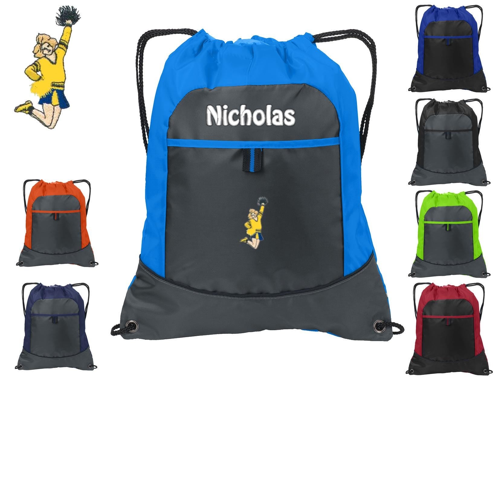 Personalized Kids Cinch Pack Drawstring, Cheerleader Design, Gym School PE Sports Backpack, Embroidered Monogrammed Custom Name School Gift