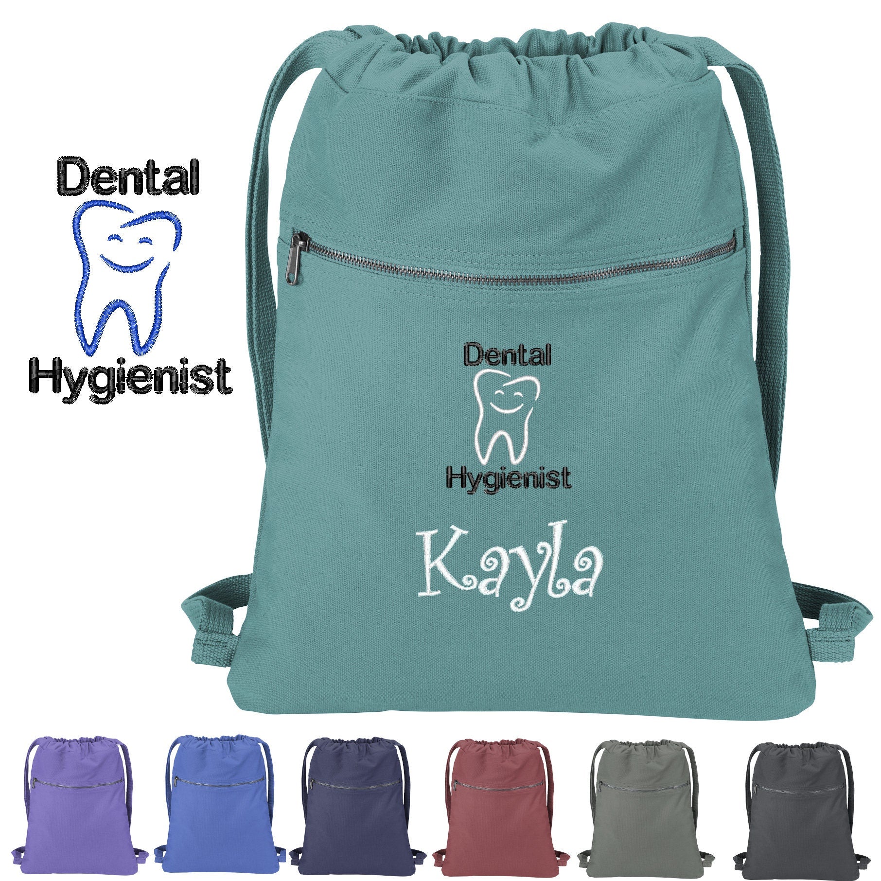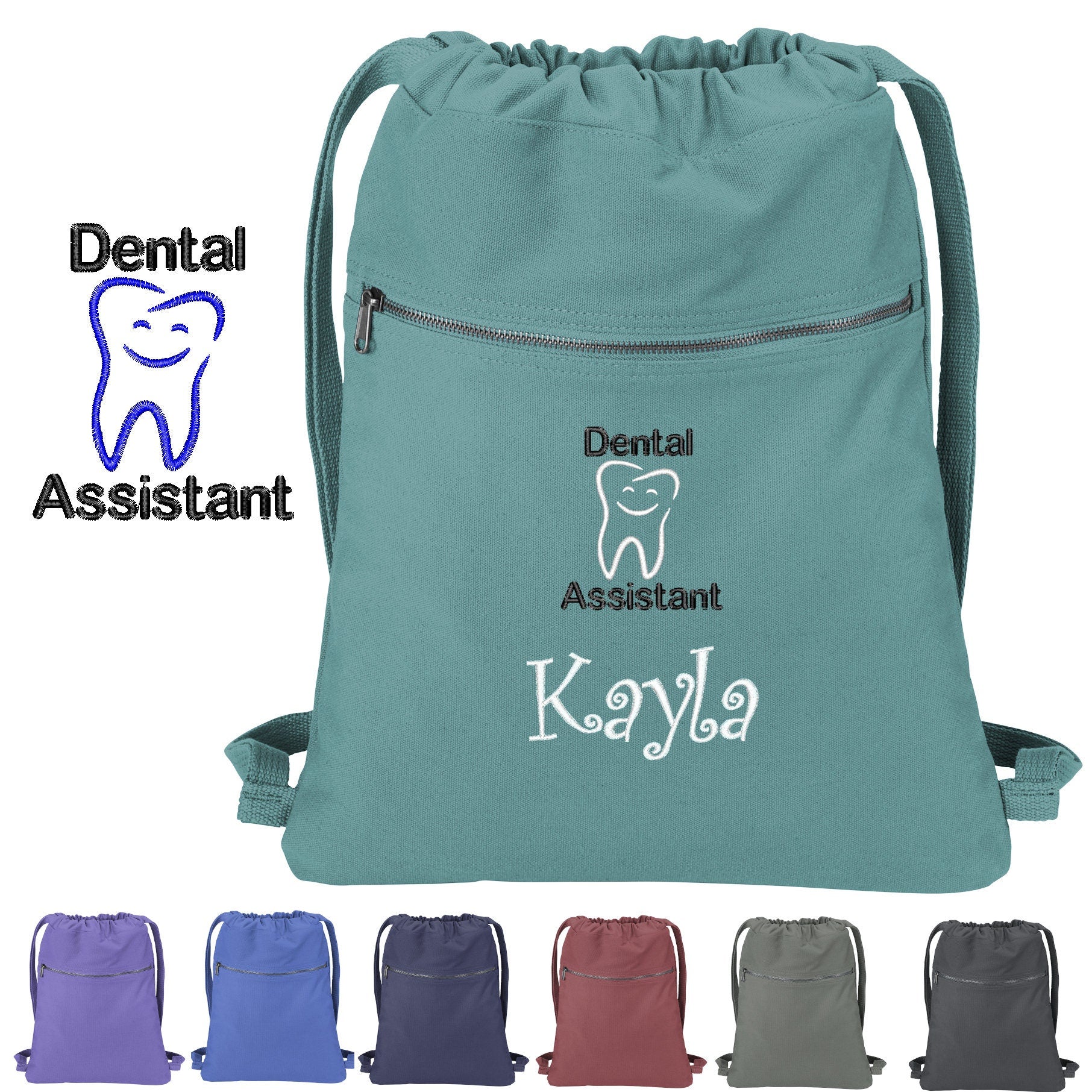 Personalized Dental Assistant Cinch Pack Gift, Embroidered Happy Tooth Design, Drawstring School, Pool Backpack, Monogrammed Custom Name