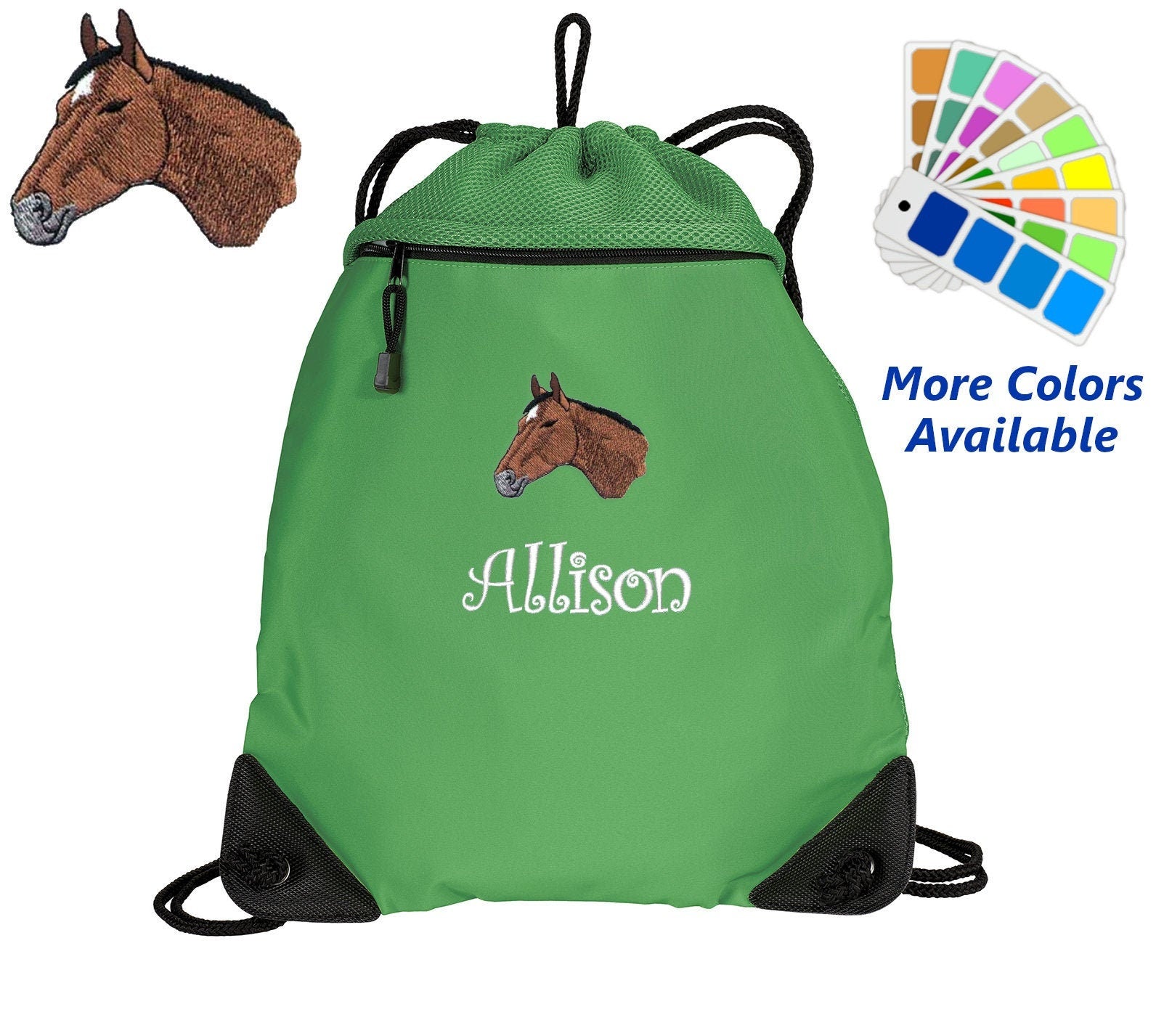 Personalized Cinch Pack, Drawstring Gym School PE, Pool Backpack, Embroidered Horse, Monogrammed Custom Name, Perfect Gift