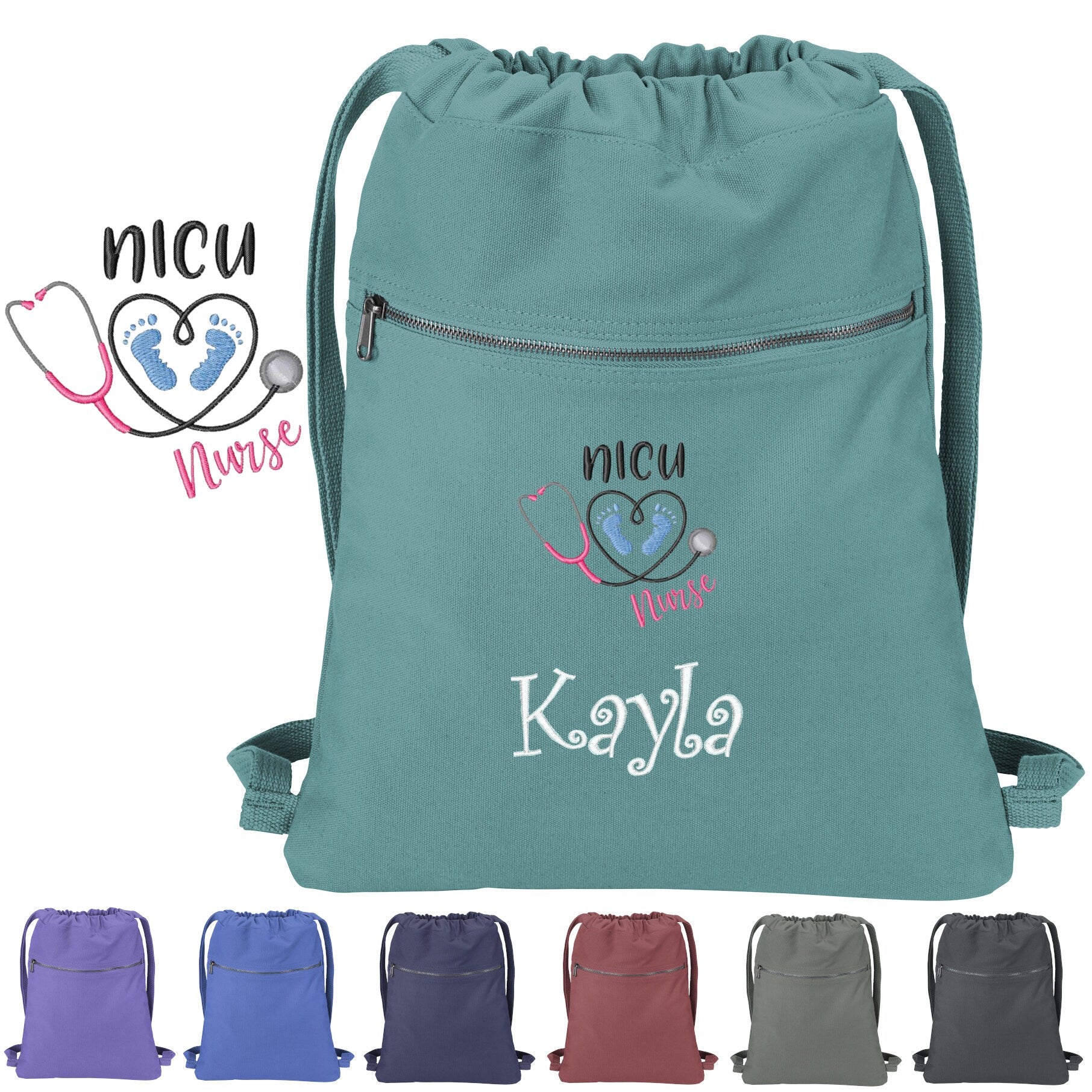 Personalized NICU Nurse Cinch Pack Gift, Embroidered NICU Stethoscope Design, Drawstring School, Pool Backpack, Monogrammed Custom Name
