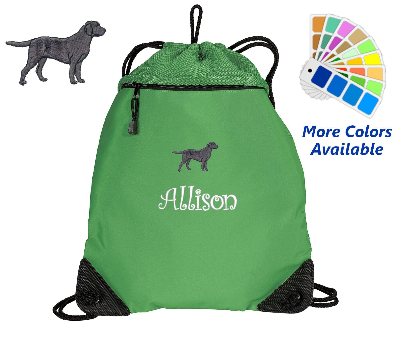 Personalized Cinch Pack, Drawstring Gym School PE, Pool Backpack, Embroidered Labrador Retriever Dog, Monogrammed Custom Name, Perfect Gift
