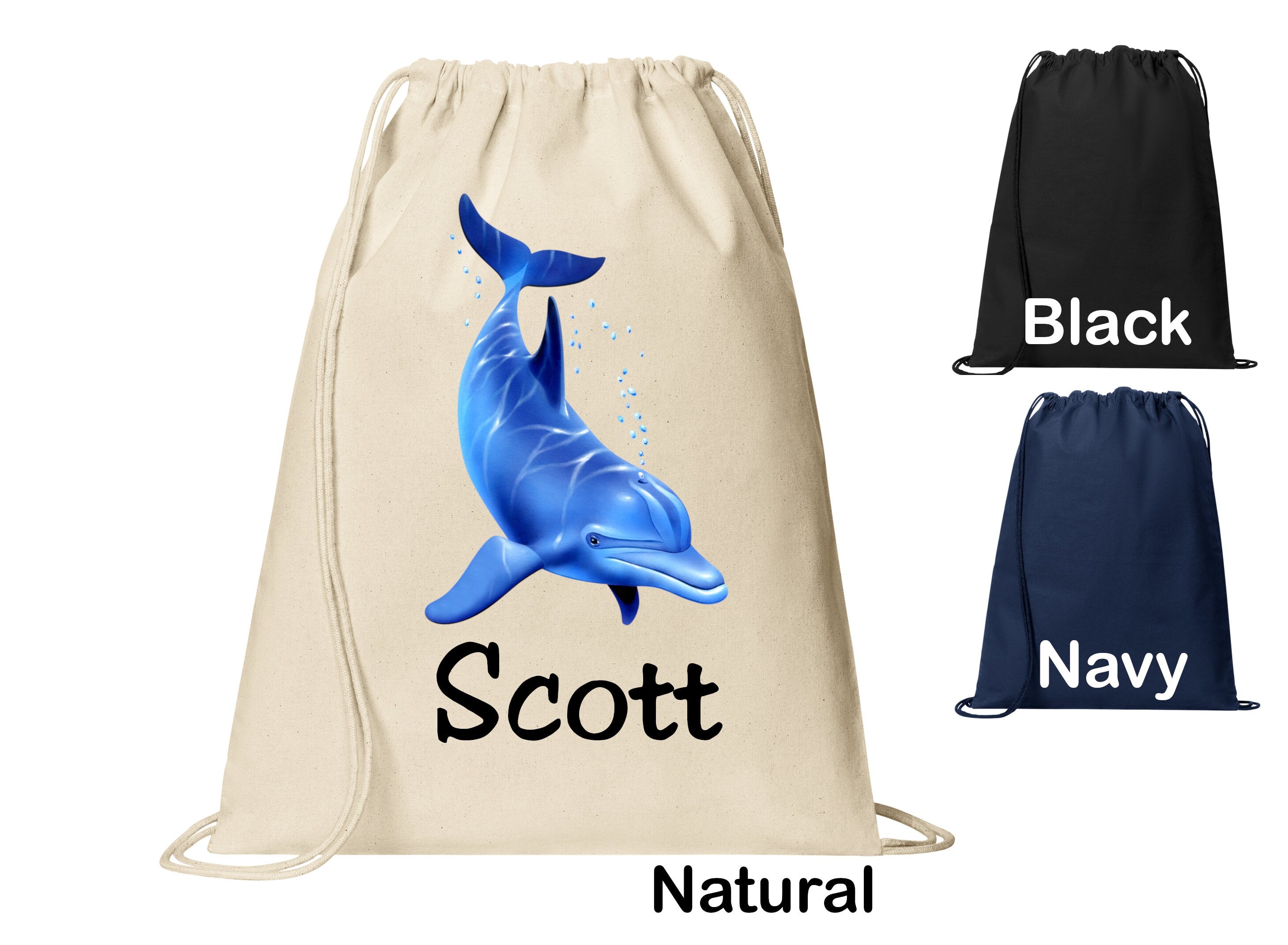 Personalized Dolphin Deep Dive Cinch Pack, Drawstring Gym School PE Pool Backpack, Printed Monogrammed Custom Name, Perfect Gift