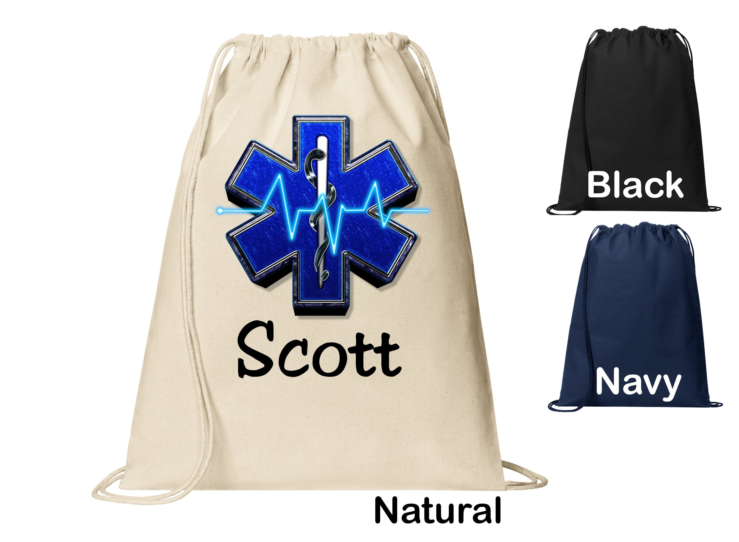 Personalized EMS Paramedic Cinch Pack, Drawstring Gym School PE Pool Backpack, Printed Monogrammed Custom Name, Perfect Gift