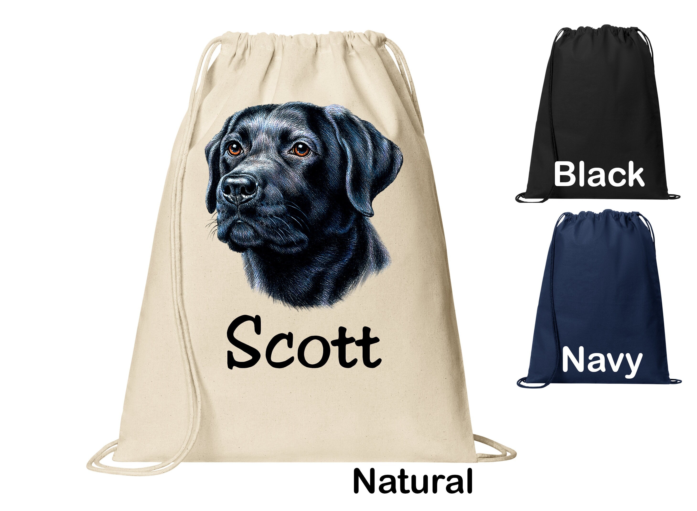 Personalized Black Lab Dog Cinch Pack, Drawstring Gym School PE Pool Backpack, Printed Monogrammed Custom Name, Perfect Gift
