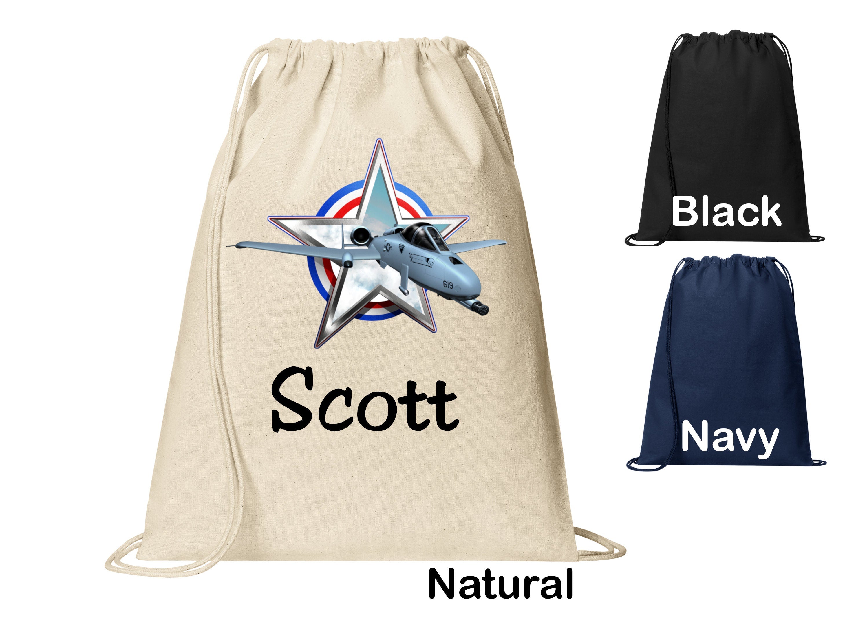 Personalized A10 Plane Warthog Plane Cinch Pack, Drawstring Gym School PE Pool Backpack, Printed Monogrammed Custom Name, Perfect Gift