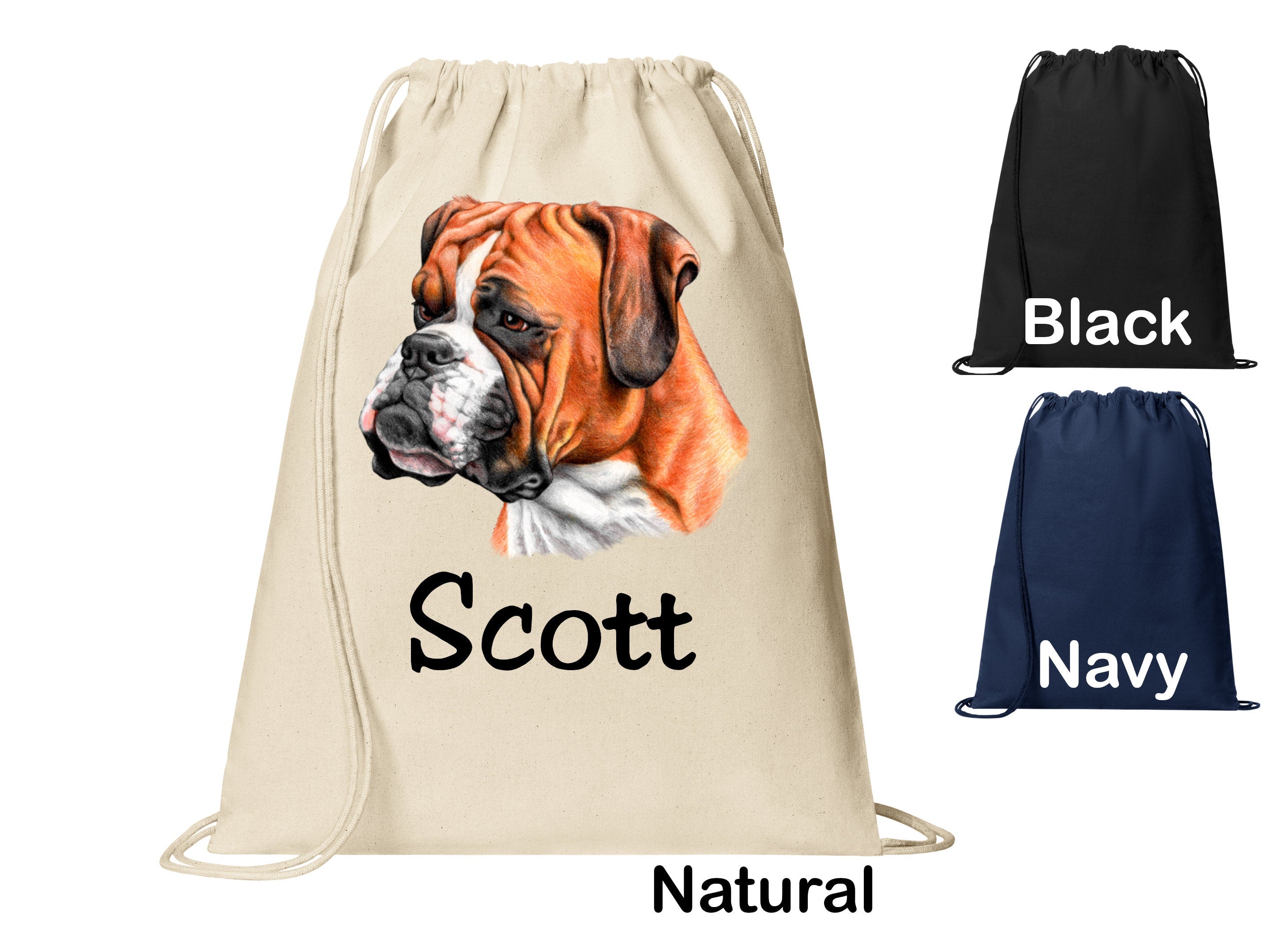 Personalized Boxer Dog Cinch Pack, Drawstring Gym School PE Pool Backpack, Printed Monogrammed Custom Name, Perfect Gift