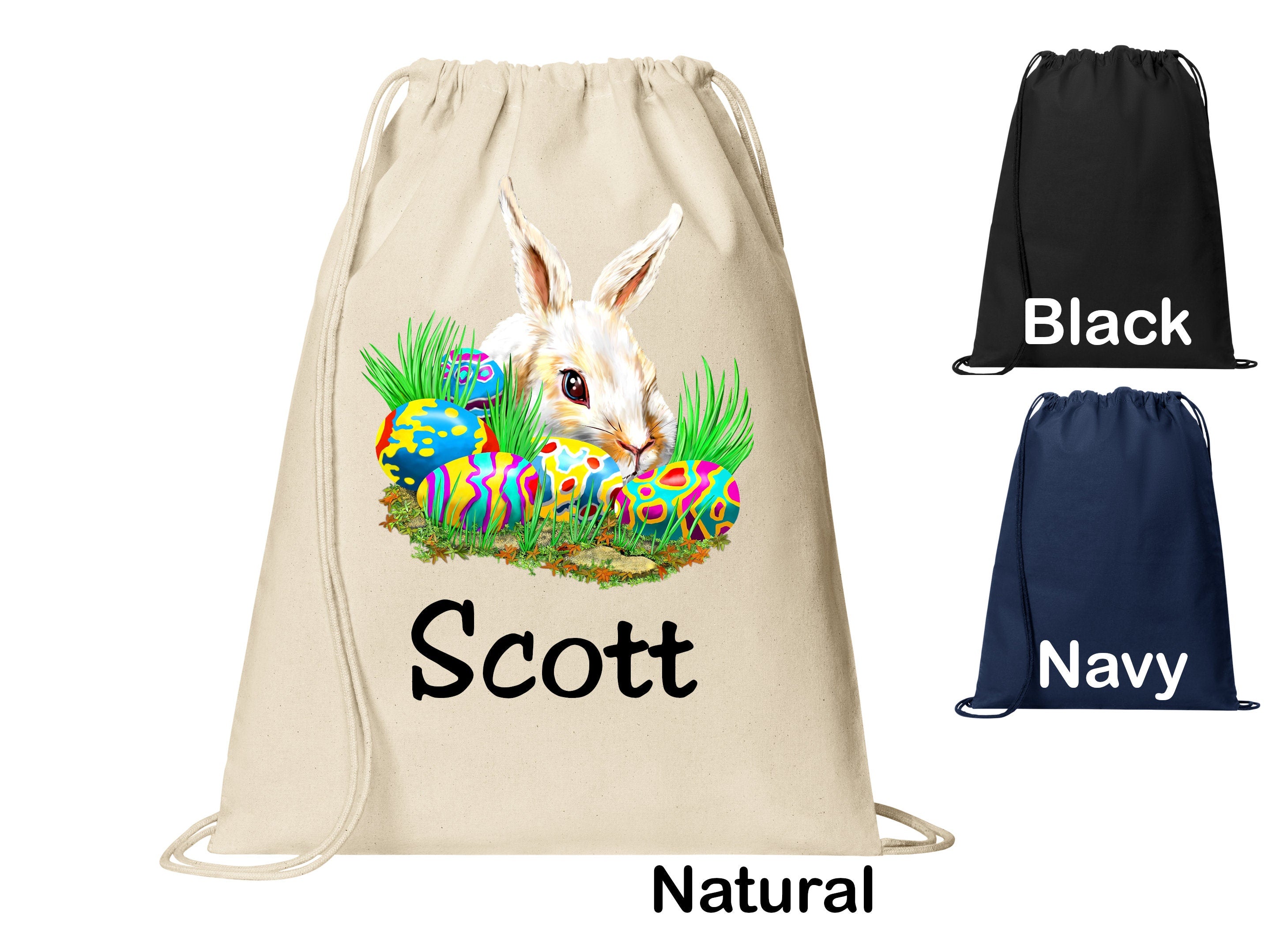 Personalized Easter Bunny Eggs Holiday Cinch Pack, Drawstring Gym School Pool Backpack, Printed Monogrammed Custom Name, Perfect Gift