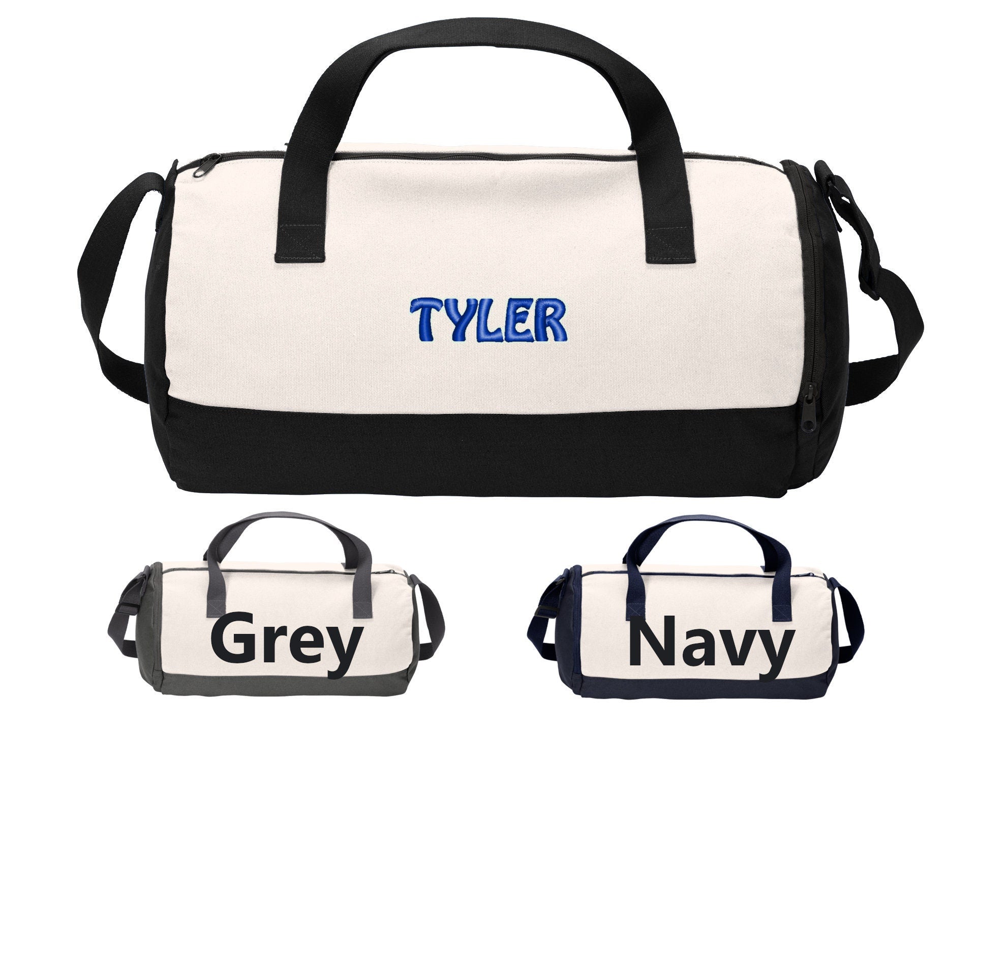 • Personalized Large Canvas Duffel Bag, Two Tone, Gym Bag, School PE Bag, Zippered Pockets, Padded Handle, Embroidered Name, Groomsman Gift