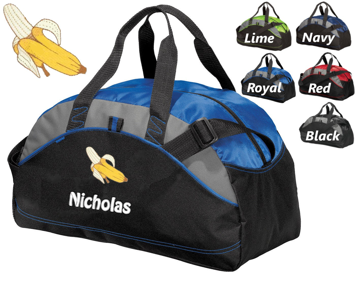 This Item includes: ► Small Duffel Bag with Contrast Piping and Stitching ► Embroidered Name of Your Choice ► Banana Embroidery Design The perfect size Duffel...