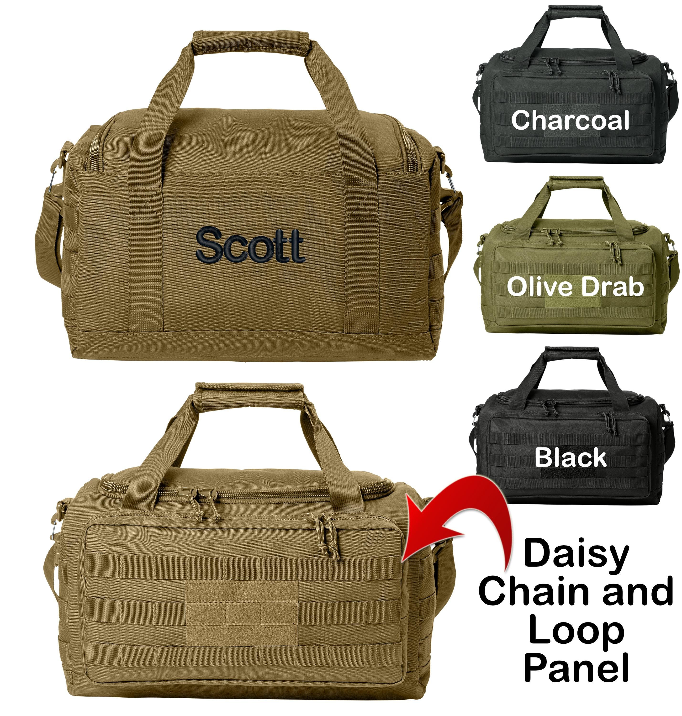 Personalized Tactical Duffel Bag, Range Bag, Loop Panel for Badges Patches, Military, Daisy Chain, Embroidered Custom Name