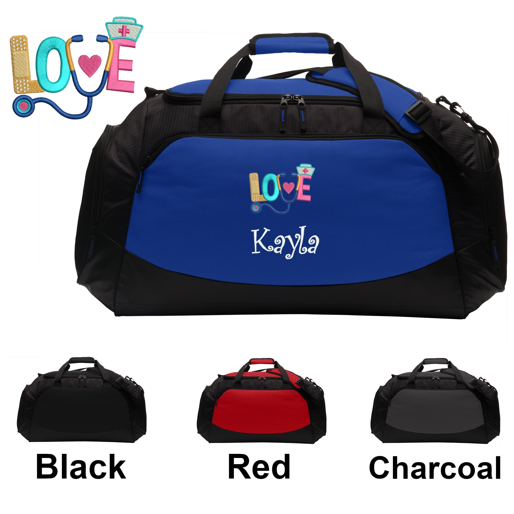 Personalized Nurse Large Duffle Bag, Love Design, Scrubs Travel Bag, Embroidered Custom Name, Hospital Bag, Monogrammed, Travel Gift