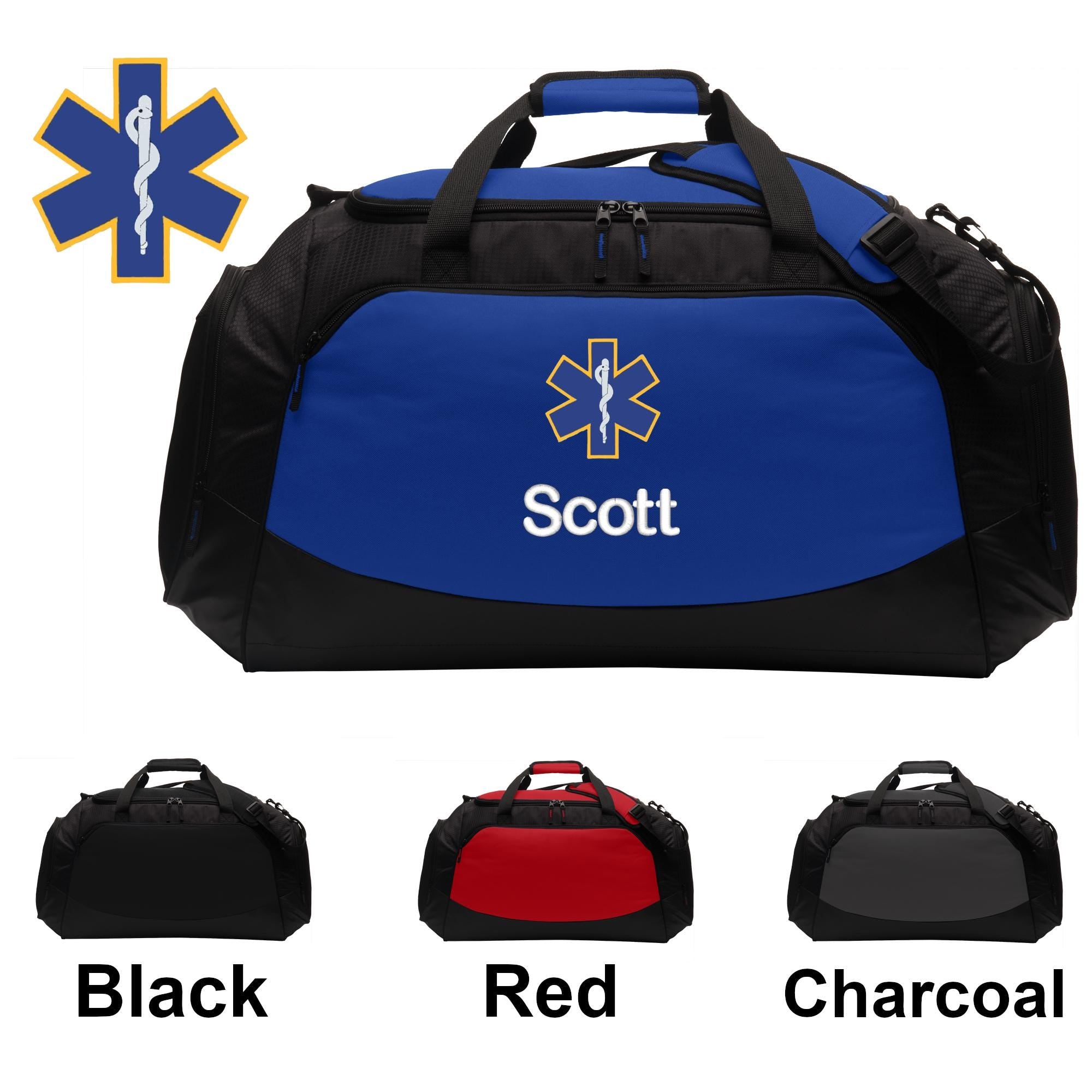 Personalized Paramedic Large Duffle Bag, Star of Life Design, Travel Bag, Embroidered Custom Name, Hospital Bag, Monogrammed, Travel Gift