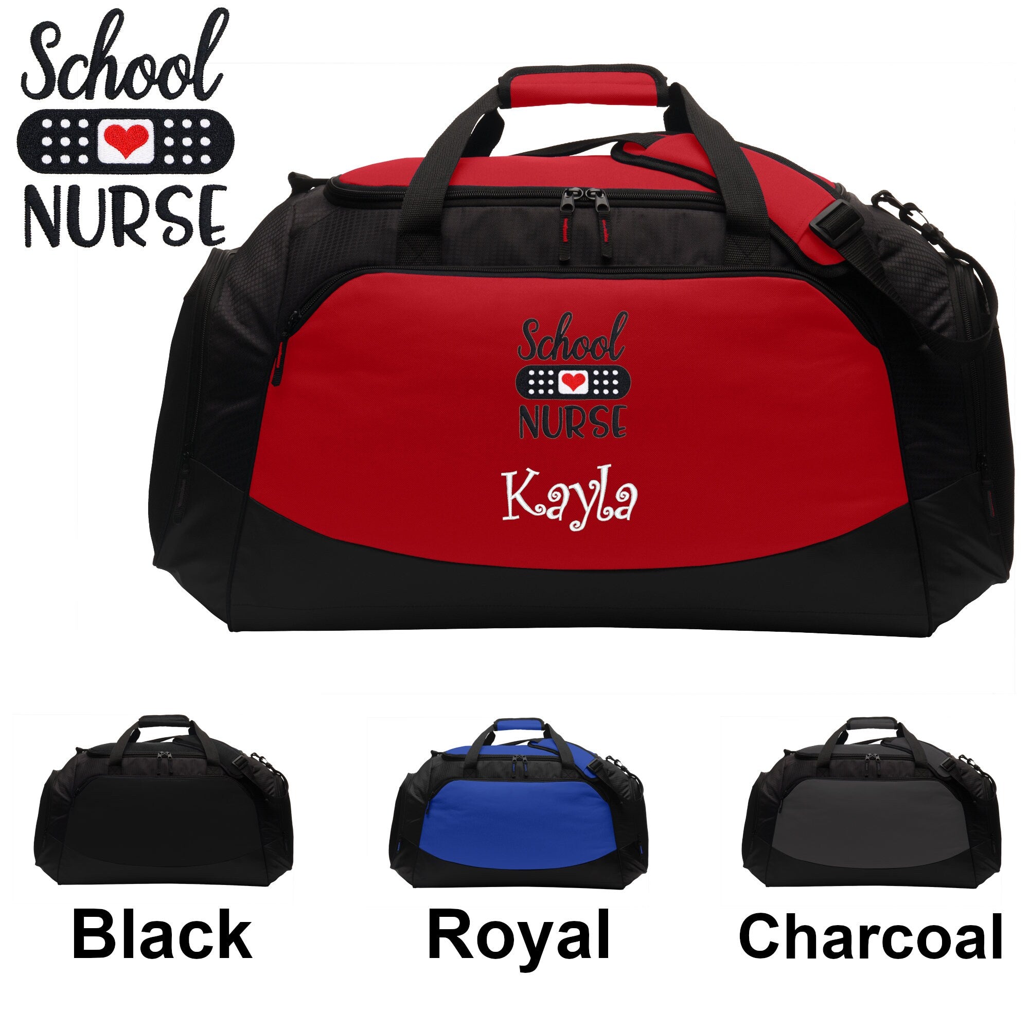 Personalized School Nurse Large Duffle Bag, Design, Scrubs Travel Bag, Embroidered Custom Name, Hospital Bag, Monogrammed, Travel Gift