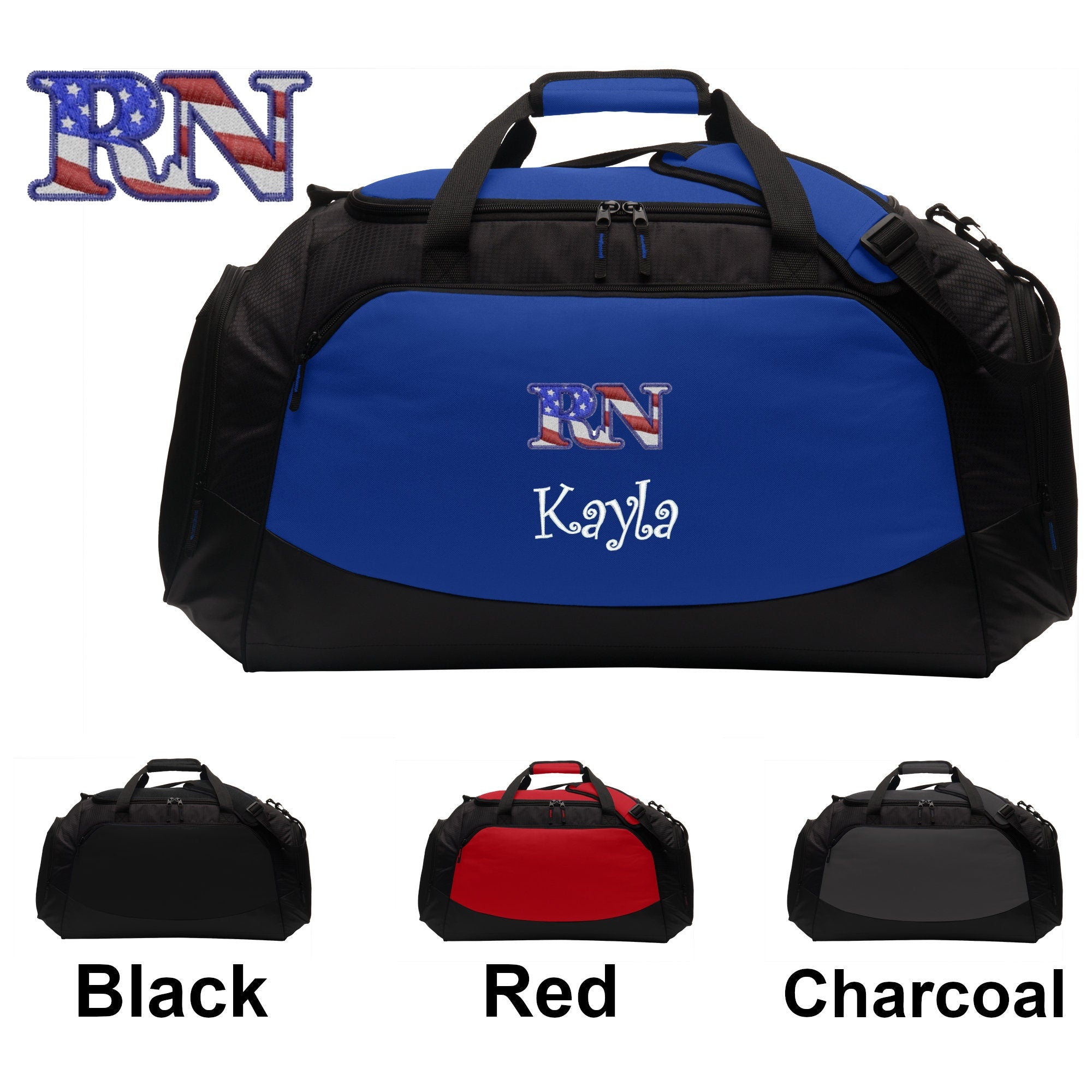 Personalized RN Nurse Large Duffle Bag, RN Flag Design, Scrubs Travel Bag, Embroidered Custom Name, Hospital Bag, Monogrammed, Travel Gift