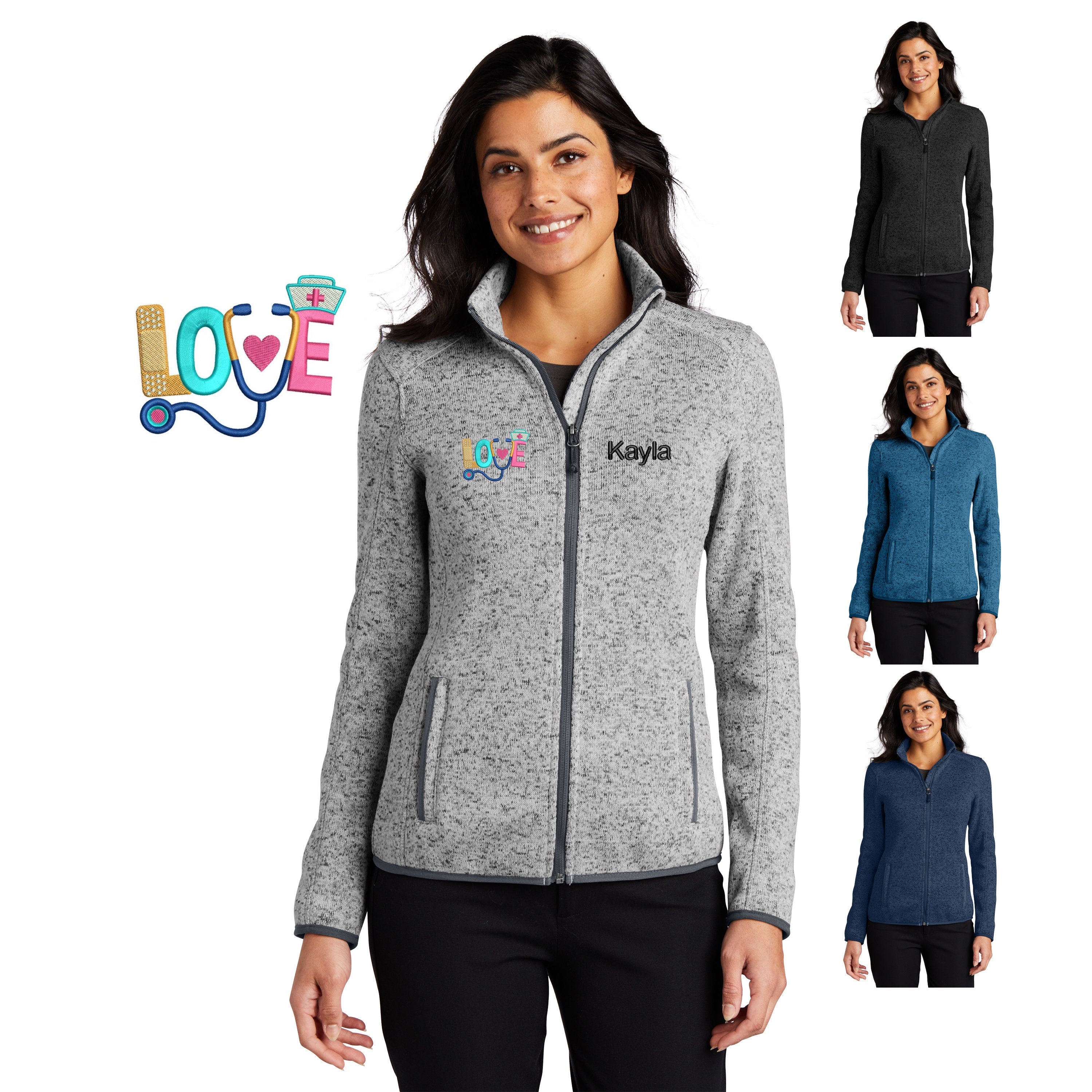 Personalized Nurse Jacket Sweater with Love Design, Custom Embroidered Text or Name, Doctor, Nurse, Jacket, Dentist, Medical Apparel