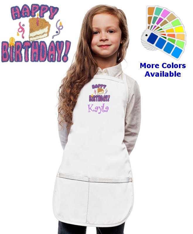 Personalized Kids Birthday Apron with Happy Birthday Cake Embroidery Design Birthday Gift, Cooking Kitchen School Student Gift, Monogrammed