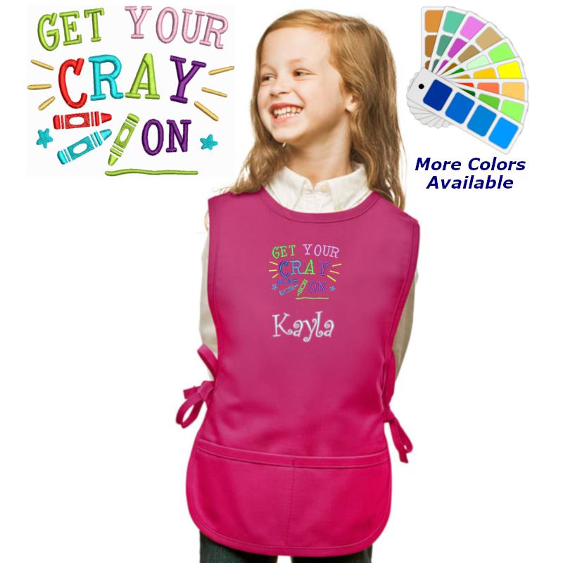 Regular price $18.98Sale price $18.98 Regular priceUnit price / perThis Item includes: ► Kids Art Smock Cobbler Apron ► Embroidered Text of Your Choice ► Get Your Cray On Embroidery Design Regular fits Kids Ages...