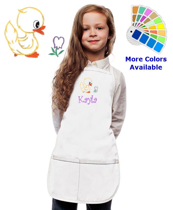 Personalized Kids Apron with Duck and Flower Embroidery Design