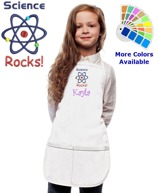 Personalized Kids Science Apron with Science Rocks Embroidery Design, Cooking Kitchen Gift, School Gift, Student Gift, Monogrammed