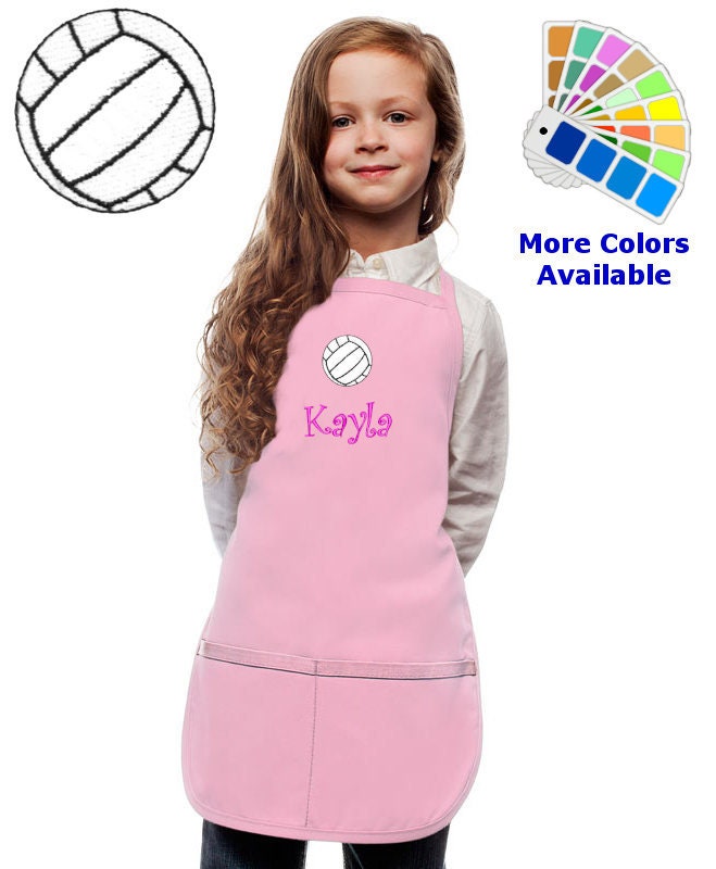 Personalized Kids Apron with Volleyball Embroidery Design, Kitchen Cook Gift, School Gift, Sports Gift, Monogrammed, Cooking Party