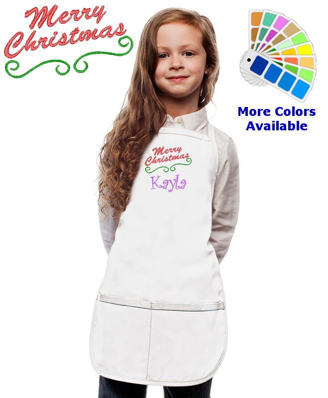 Personalized Kids Christmas Apron with Merry Christmas Embroidery Design