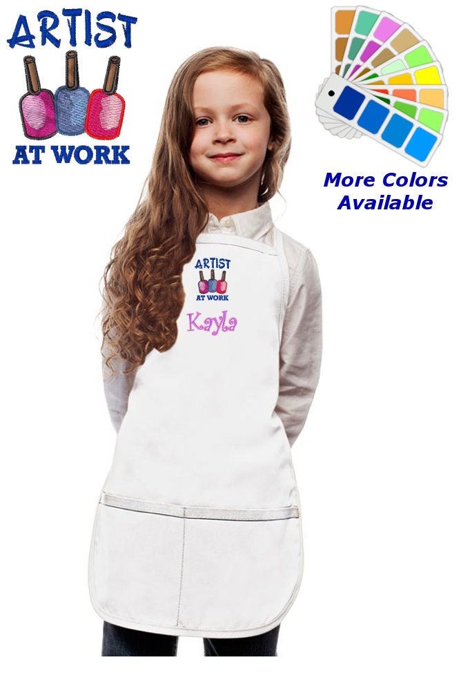 Personalized Kids Nail Artist Apron with Embroidery Design Nail Tech Manicure, Monogrammed, Art Gift, Cooking Party, Art Party, School