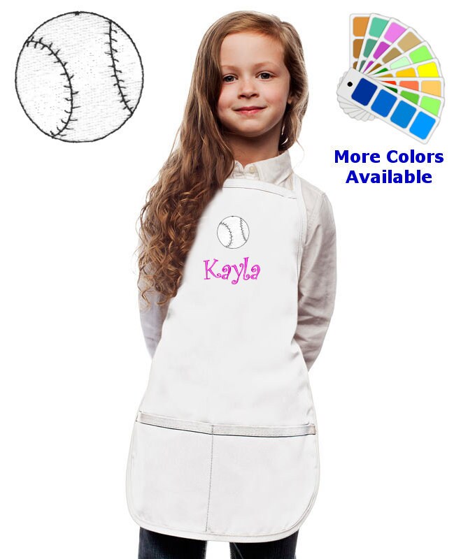 Personalized Kids Apron with Baseball Embroidery Design, Cooking Kitchen Gift, School Gift, Sports Gift, Monogrammed, Cooking Party