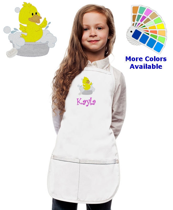 Personalized Kids Apron with Duckling Duck Embroidery Design, Monogrammed Birthday Gift, Kids Chef Apron, Kids Cook Apron, Custom Apron