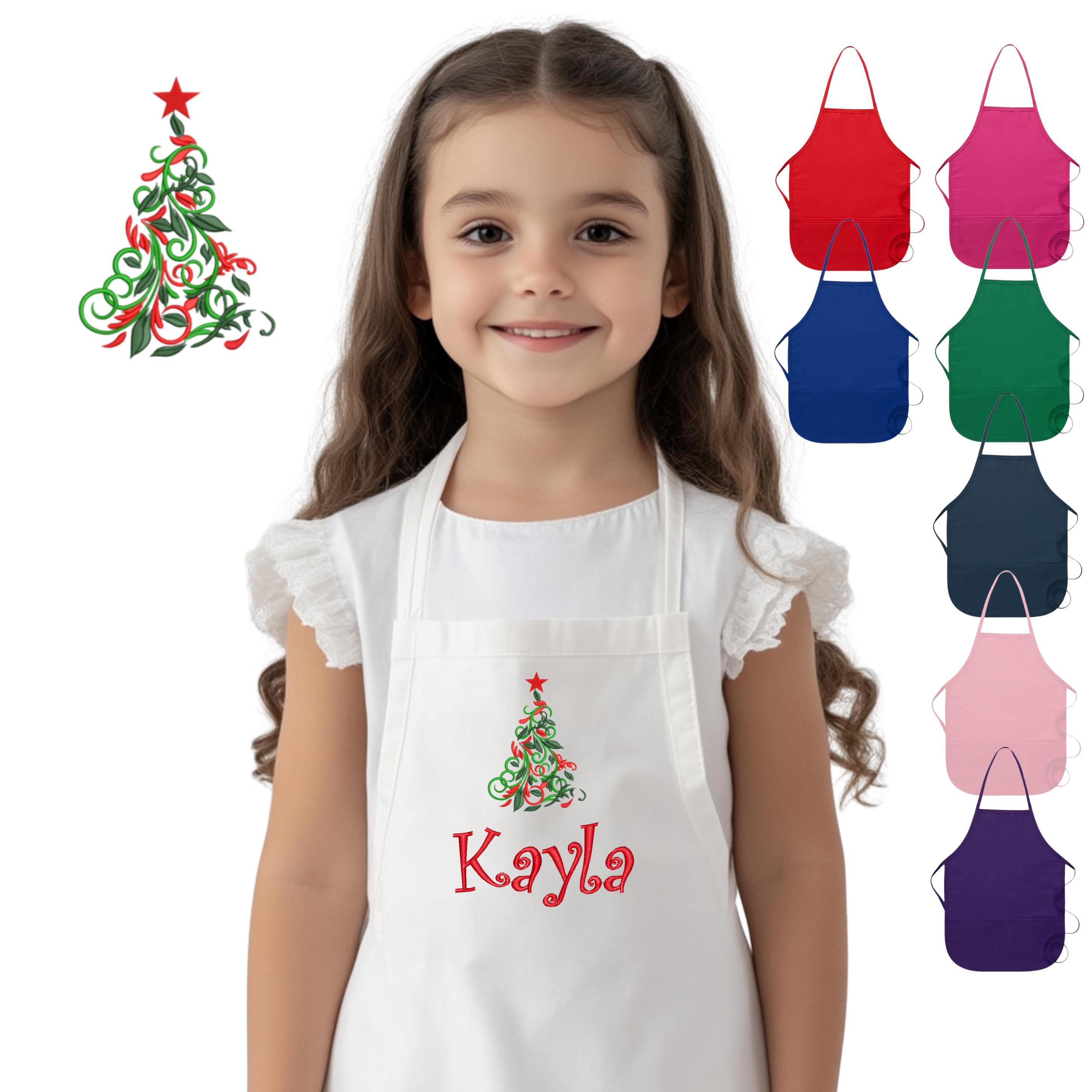 Personalized Kids Christmas Tree Apron, Embroidered Name, Monogrammed Chef Uniform, Chef Gift, Cooking Party, Art Party, School Smock