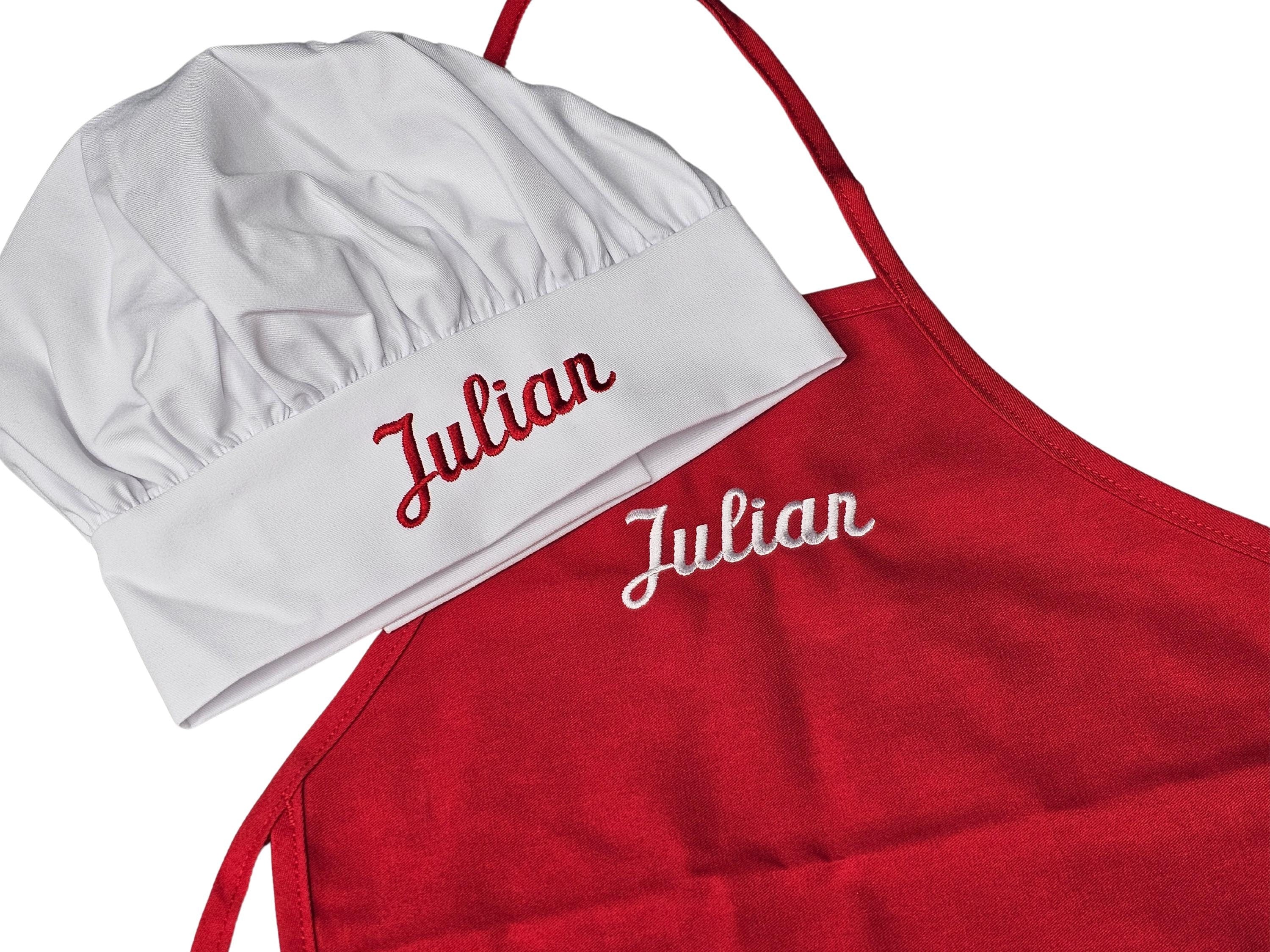 Personalized Kids Christmas Apron and Hat Set, Embroidered Name, Monogrammed Chef Uniform, Chef Gift, Cooking Party, Art Party,School Aprons