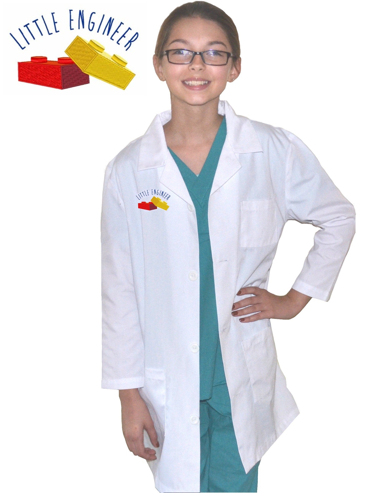 Kids Engineer Lab Coat with Little Engineer Blocks Embroidery Design