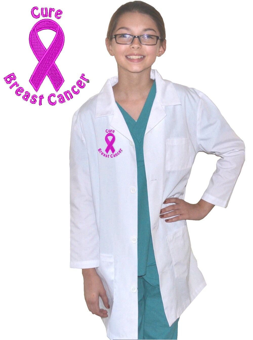 Kids Lab Coat with Cure Breast Cancer Ribbon Embroidery Design for little Doctors and Nurses