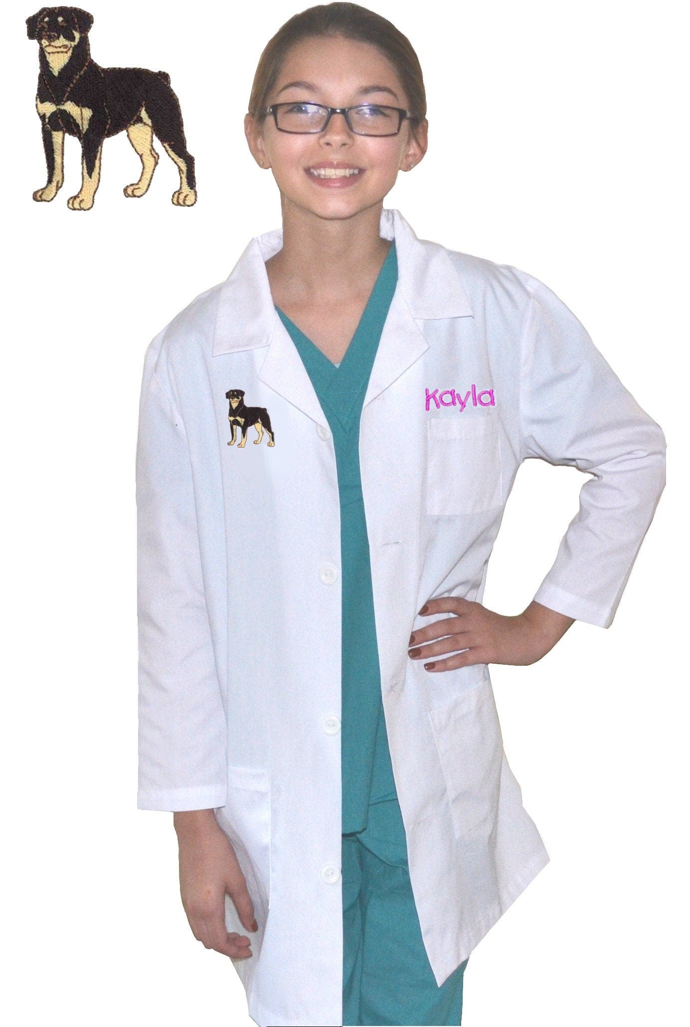Personalized Kids Lab Coat with Rottweiler Dog Embroidery Design, Veterinarian Lab Coat, Birthday Gift, Childrens Lab Coat Monogrammed Name