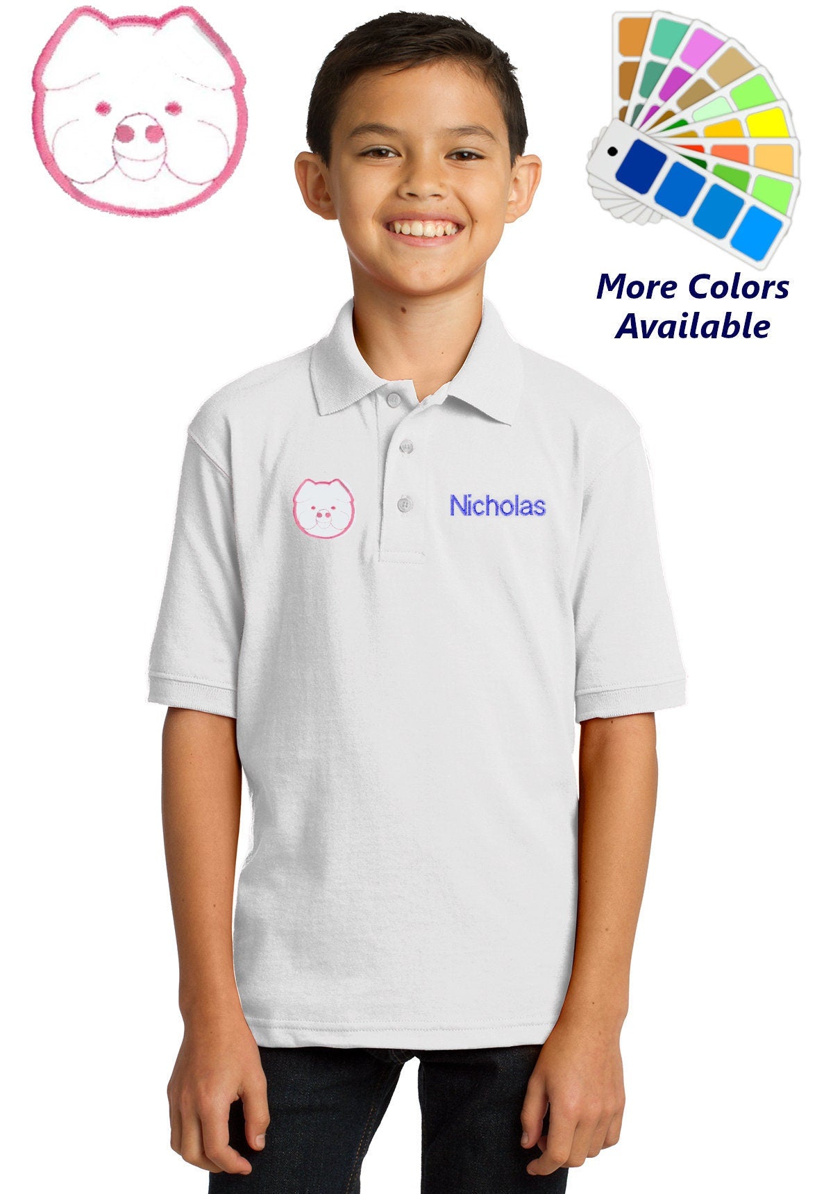 Personalized Kids Polo Shirt Embroidered Piggy Pig Monogrammed with a Name or Text of Your Choice