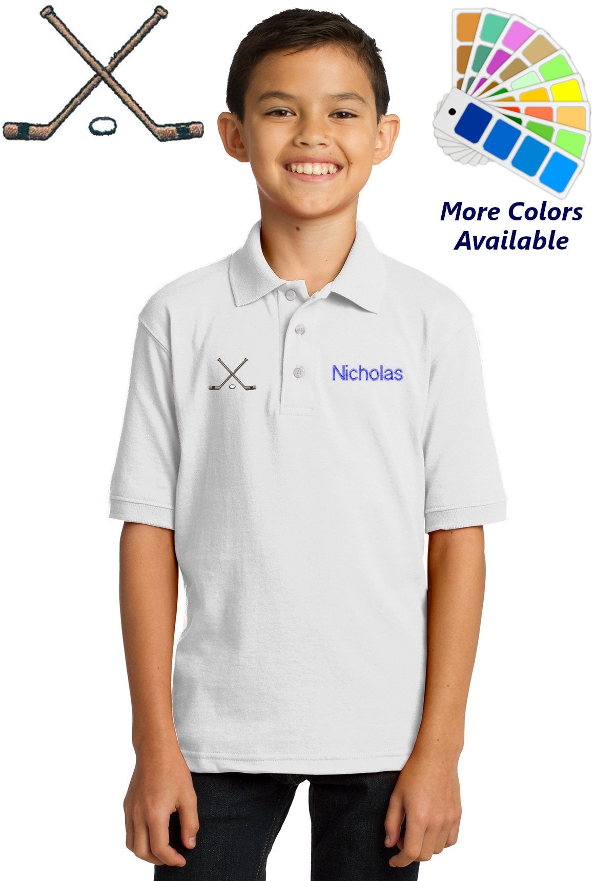 Personalized Kids Polo Shirt Embroidered Hockey Sticks Monogrammed with a Name or Text of Your Choice