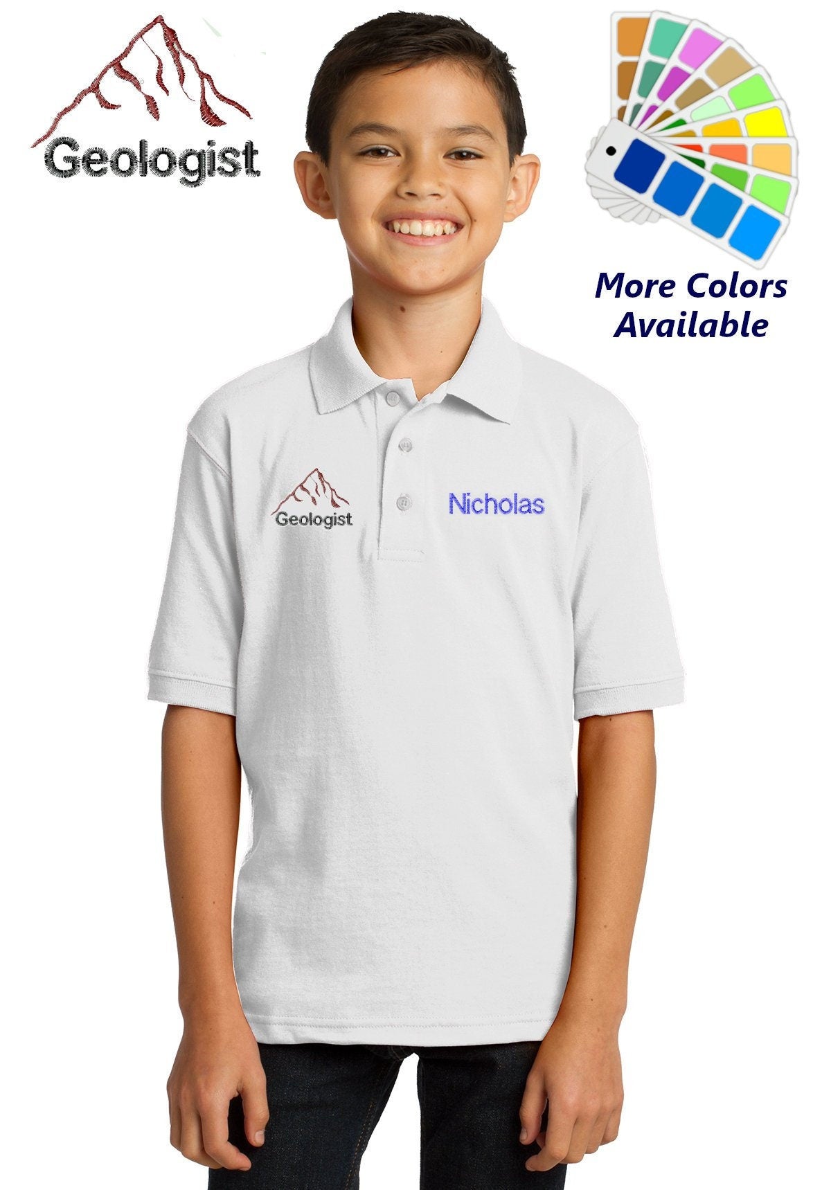 Personalized Kids Polo Shirt Embroidered Geologist Monogrammed with a Name or Text of Your Choice