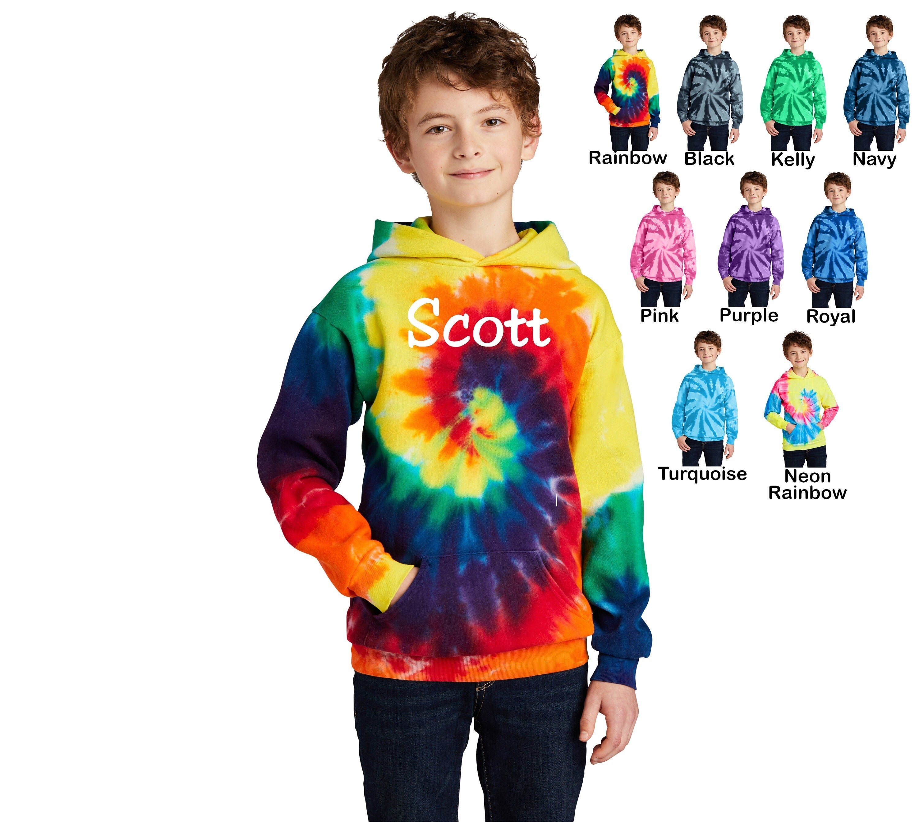 Kids Personalized Tie Dye Hoodie Sweatshirt with Name, Girl or Boy, Unisex Jacket, Colorful Childrens Hoodie, Birthday Christmas Gift