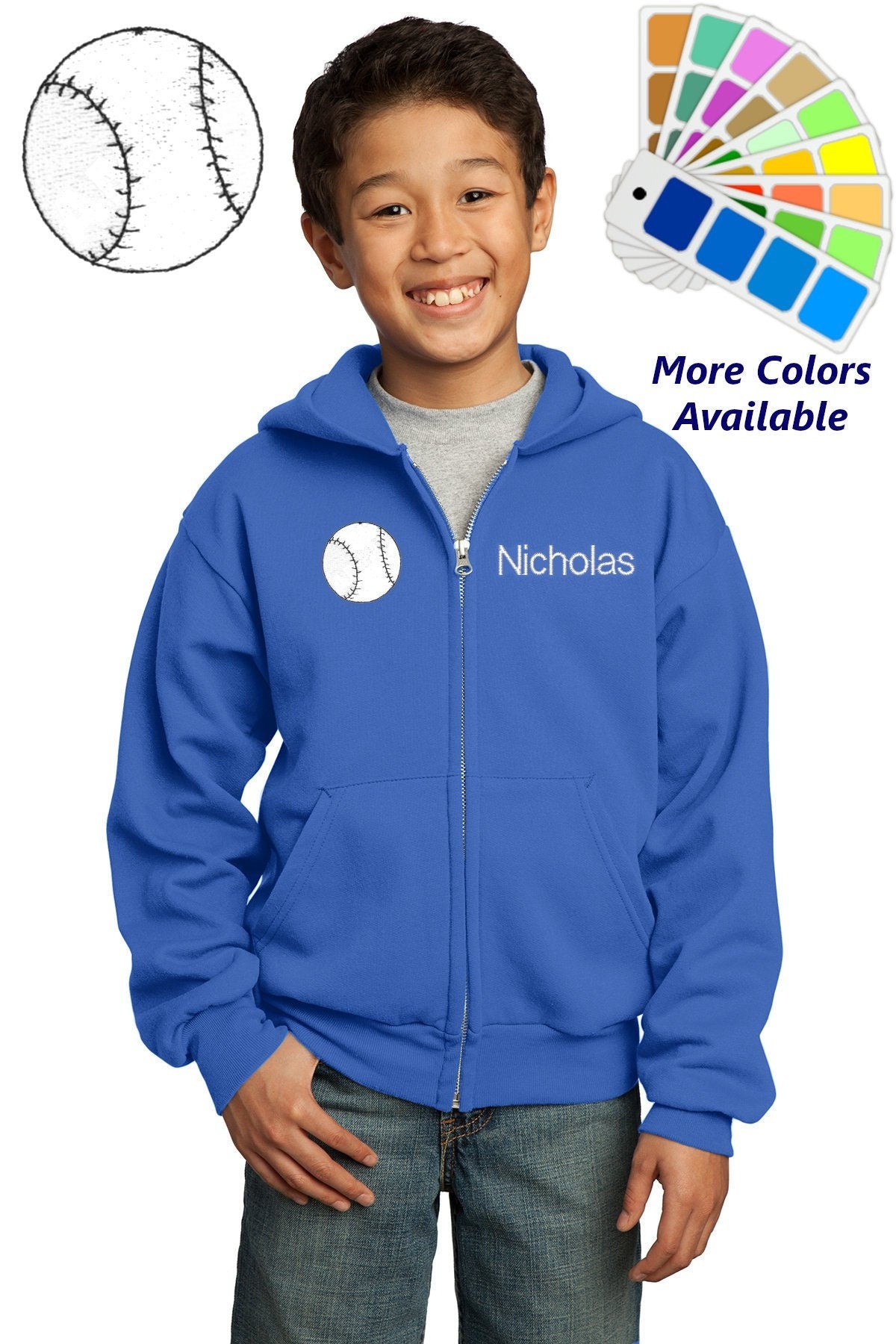 Personalized Kids Baseball Hoodie Sweatshirt Zipper Embroidered Baseball Design with a Name of Your Choice